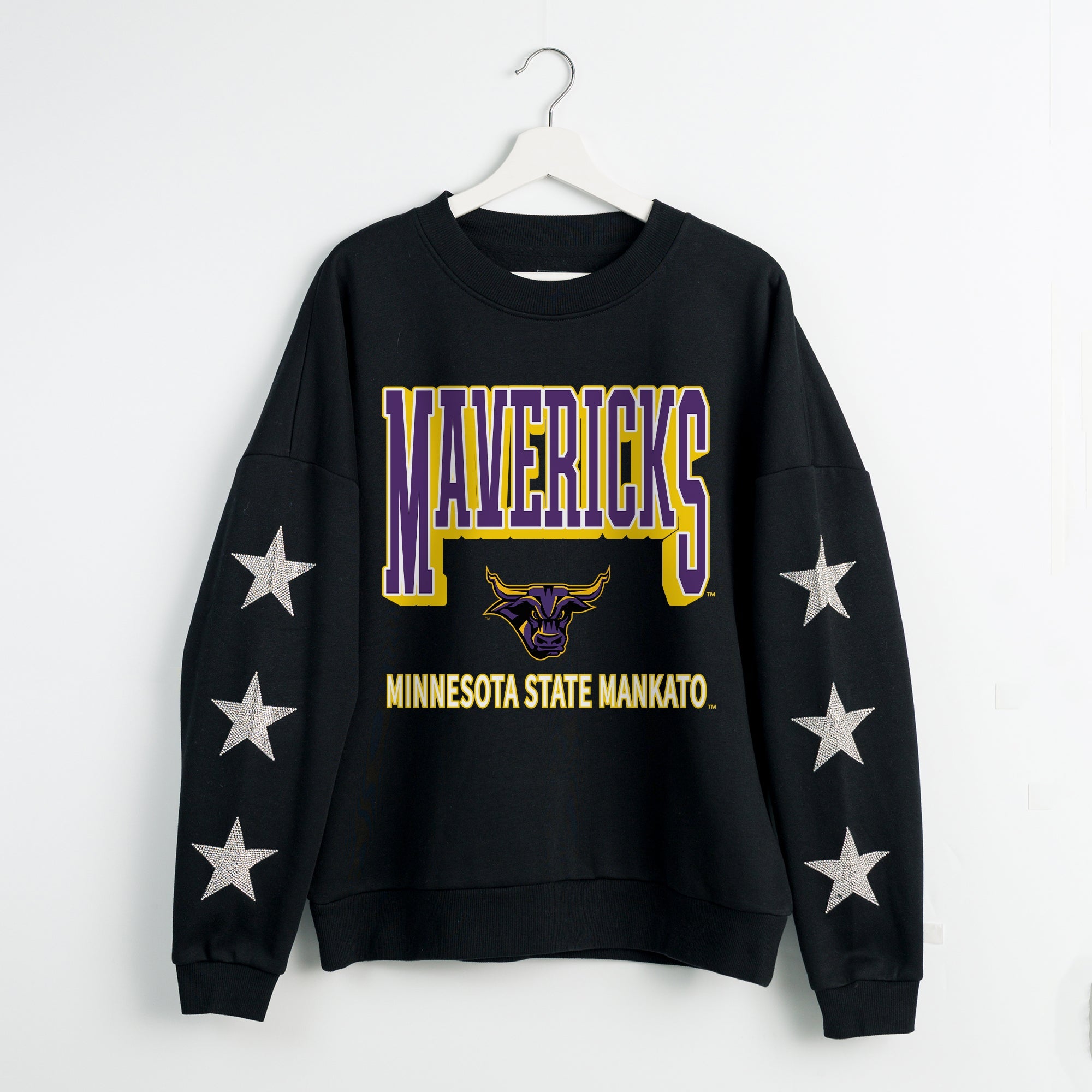 MINNESOTA STATE MANKATO MAVERICKS PURE VICTORY EMBELLISHED STAR SLEEVE CREWNECK PULLOVER