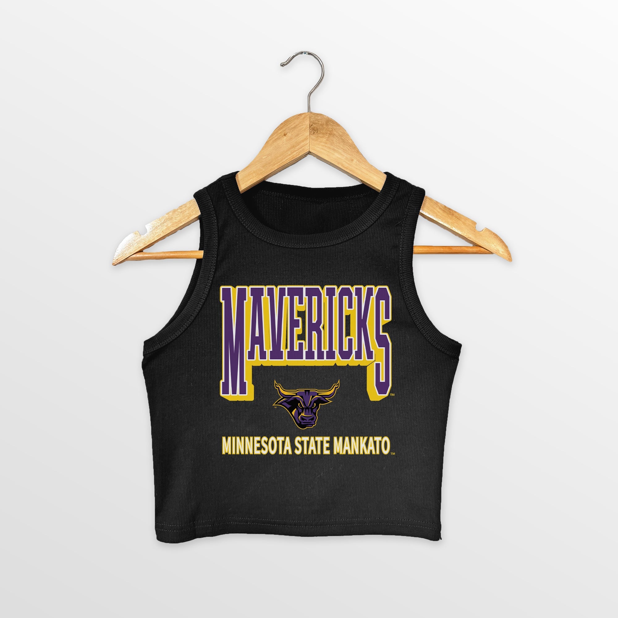 This essential ribbed crop tank is perfect for game day or everyday wear. Cheer on the Minnesota State Mankato Mavericks with this winning style. The ribbed fabric is soft and comfortable, and the cropped length is perfect for pairing with high-waisted jeans or shorts.