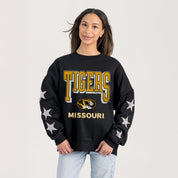 MISSOURI TIGERS PURE VICTORY EMBELLISHED STAR SLEEVE CREWNECK PULLOVER