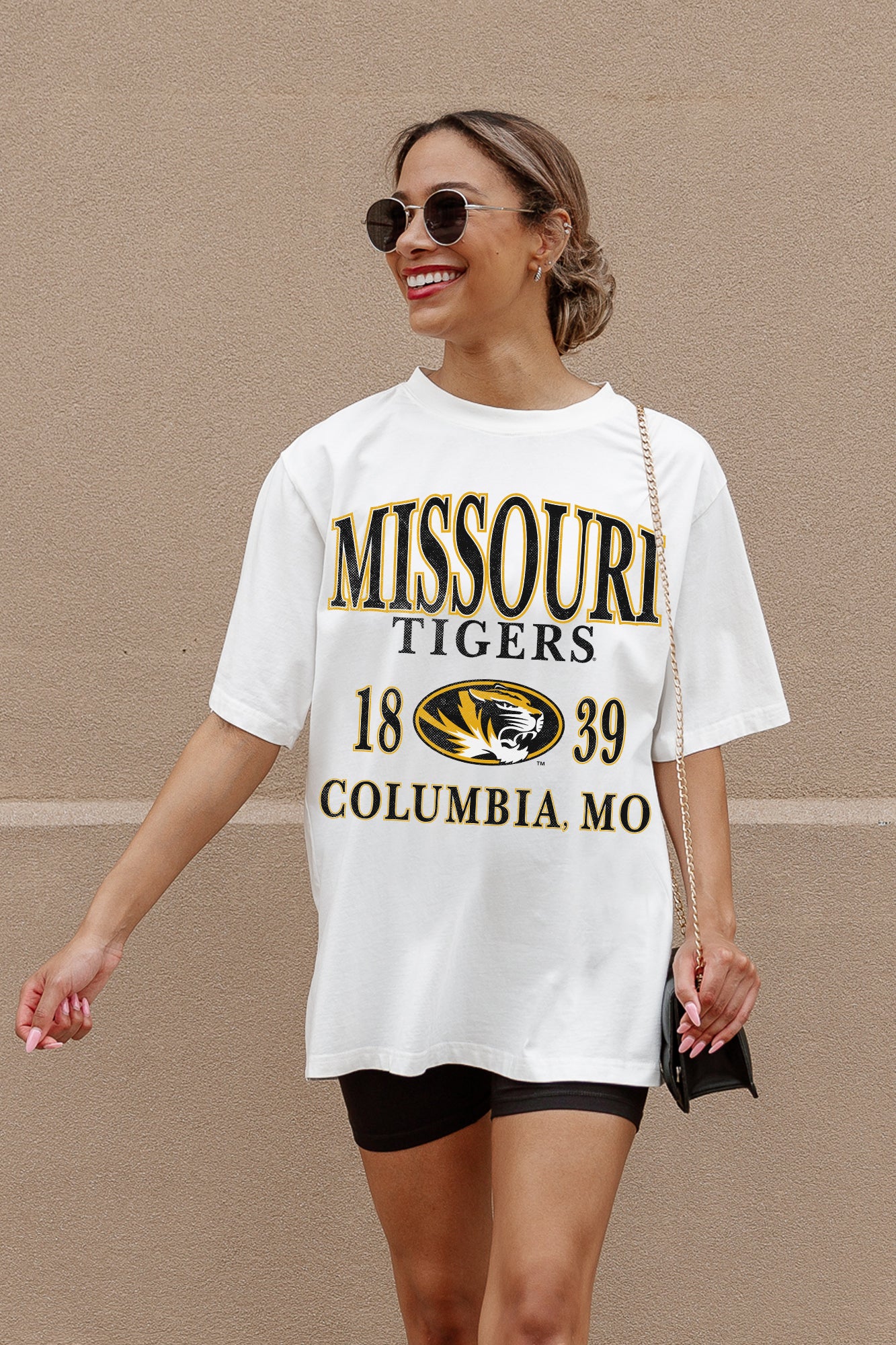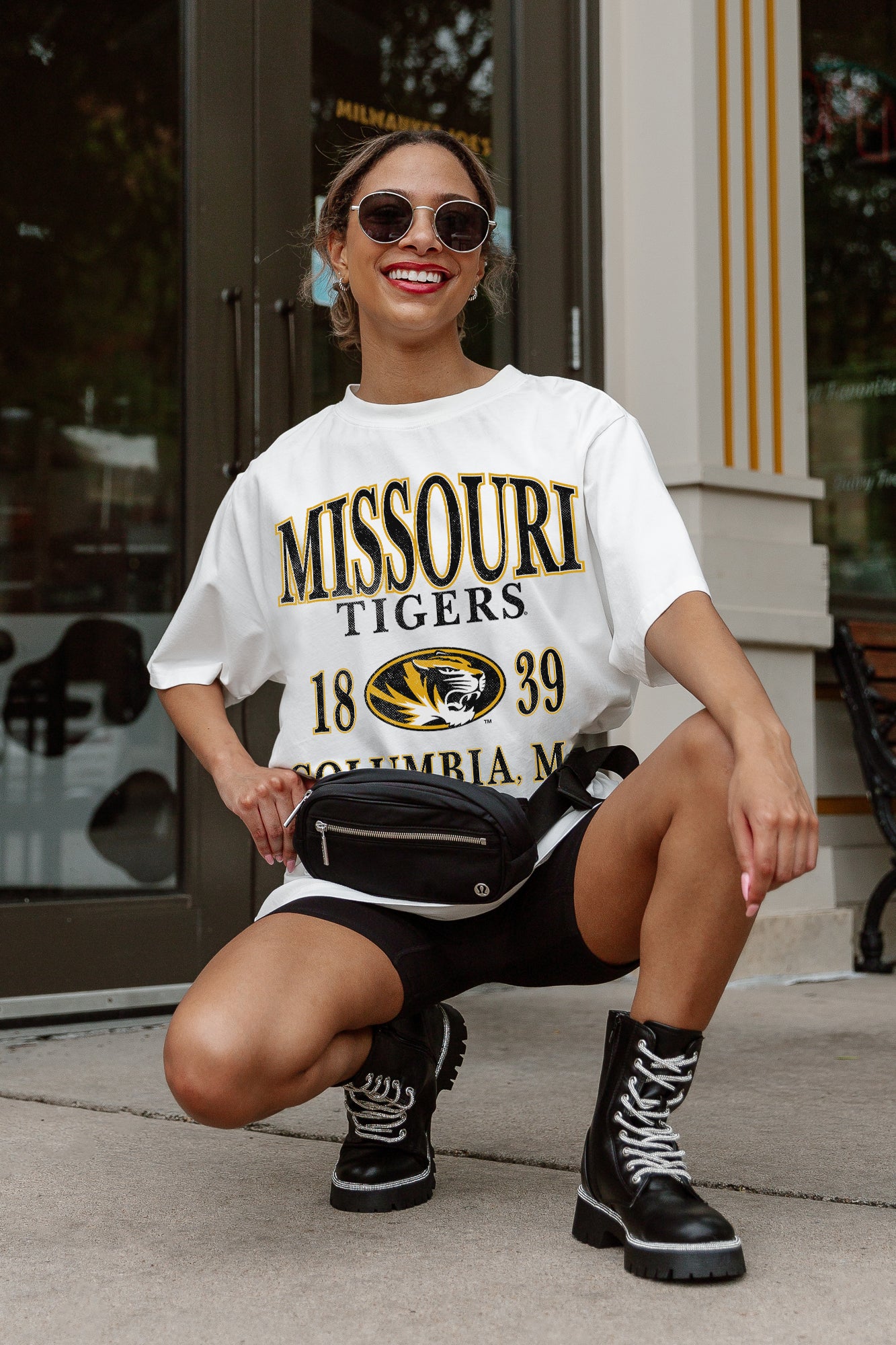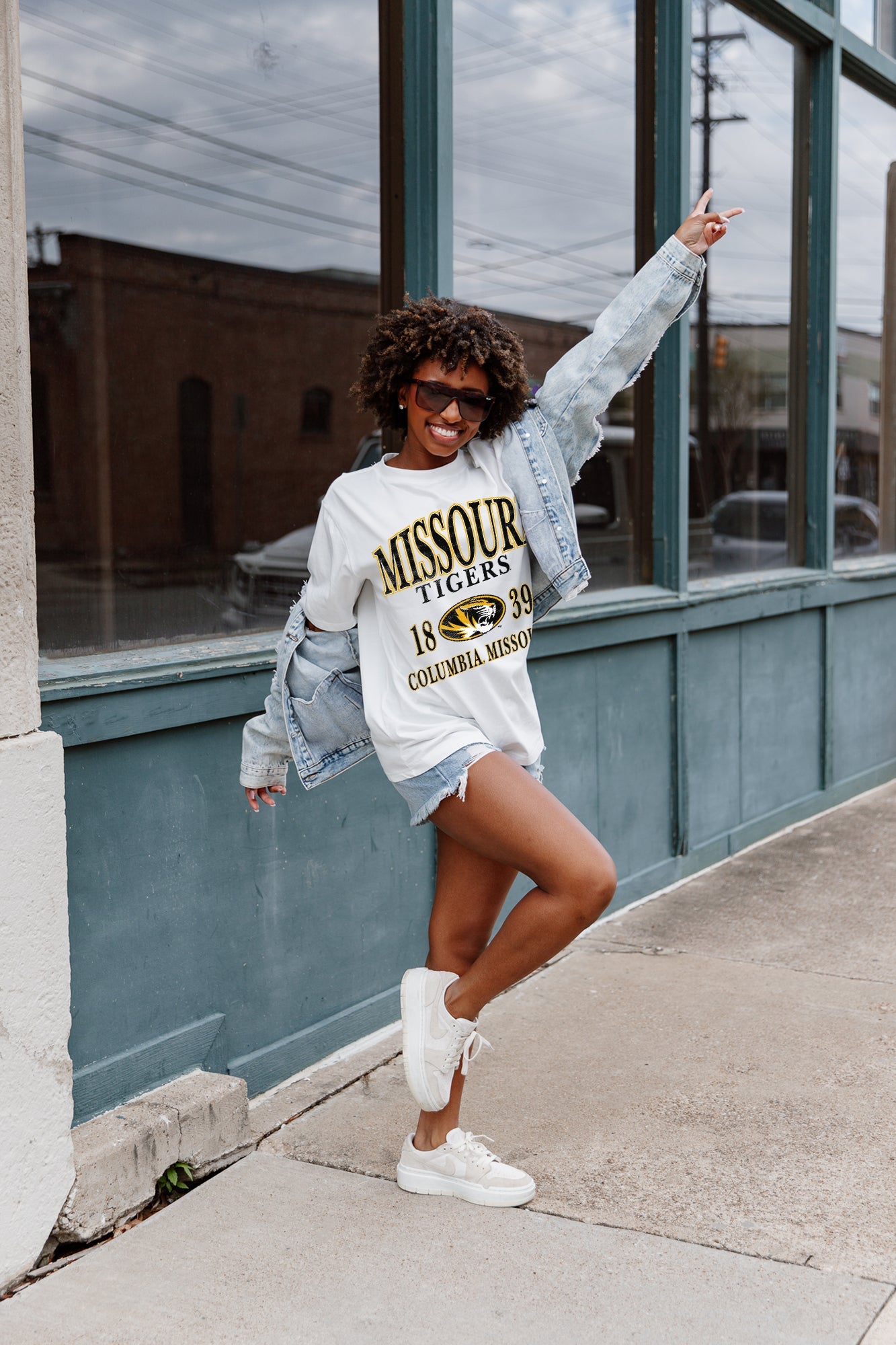 Whether you're cheering on your team from the sidelines or enjoying the festivities at the tailgate, our Missouri Tigers Unity Oversized Crewneck Teeis sure to keep you looking and feeling fabulous all season long. Join the fashion game and make every game day unforgettable!