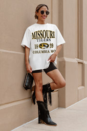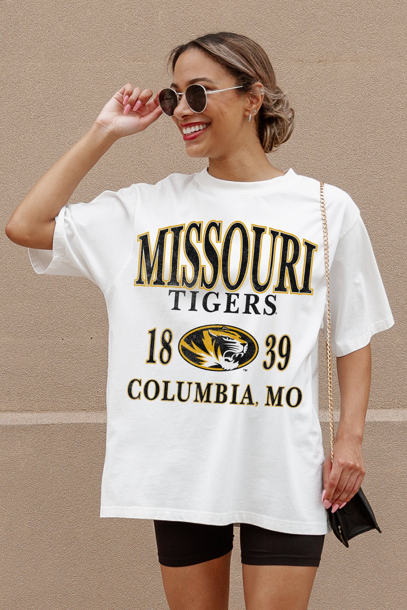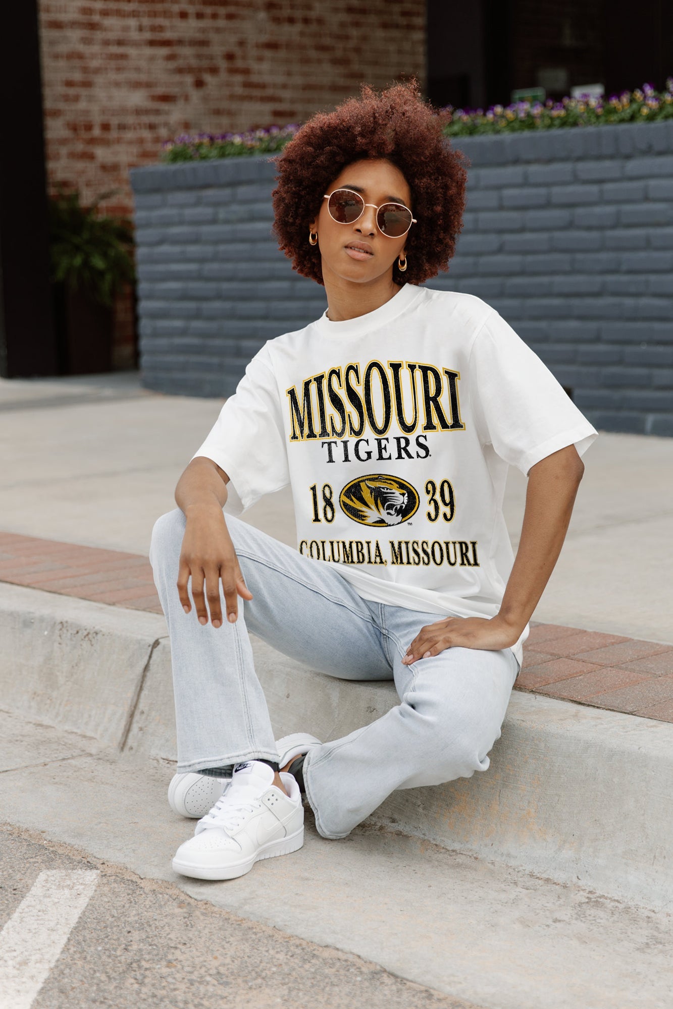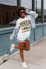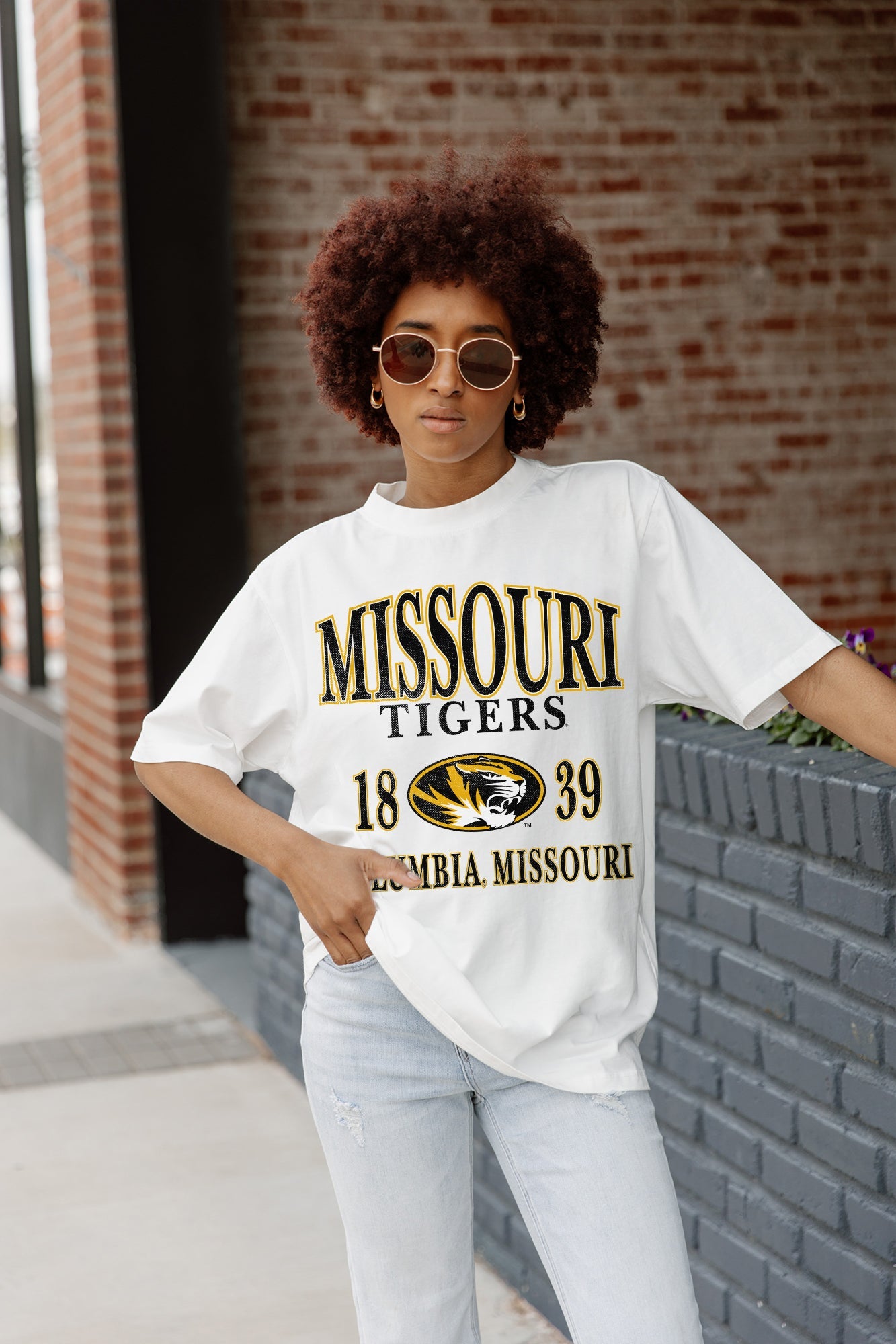 Whether you're cheering on your team from the sidelines or enjoying the festivities at the tailgate, our Missouri Tigers Unity Oversized Crewneck Teeis sure to keep you looking and feeling fabulous all season long. Join the fashion game and make every game day unforgettable!