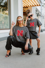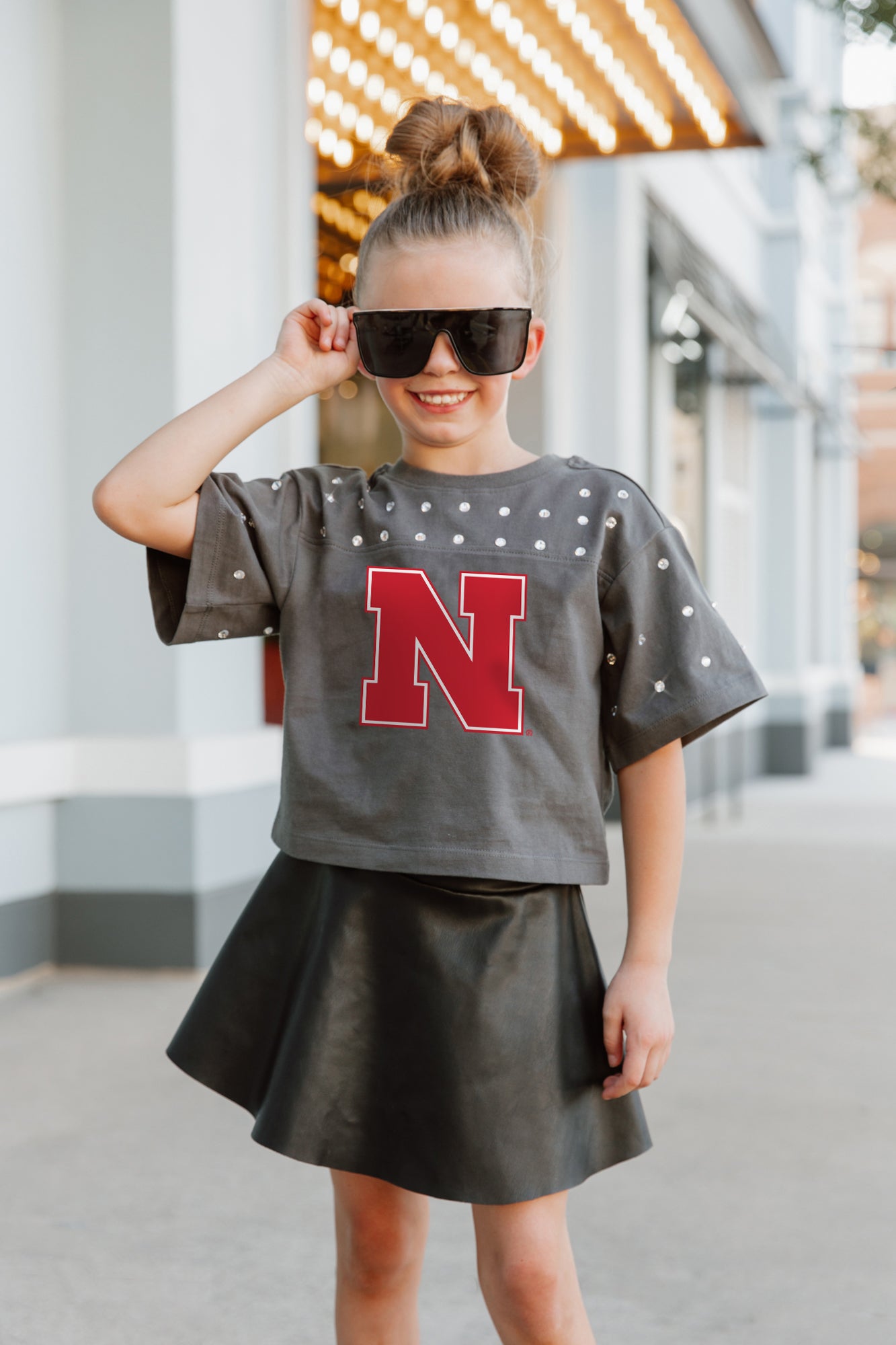NEBRASKA CORNHUSKERS Making Moves Kid's Rhinestone Crop Tee