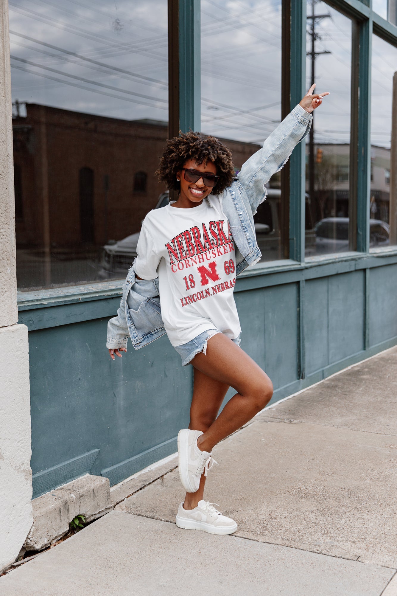 Whether you're cheering on your team from the sidelines or enjoying the festivities at the tailgate, our Nebraska Cornhuskers Unity Oversized Crewneck Teeis sure to keep you looking and feeling fabulous all season long. Join the fashion game and make every game day unforgettable!