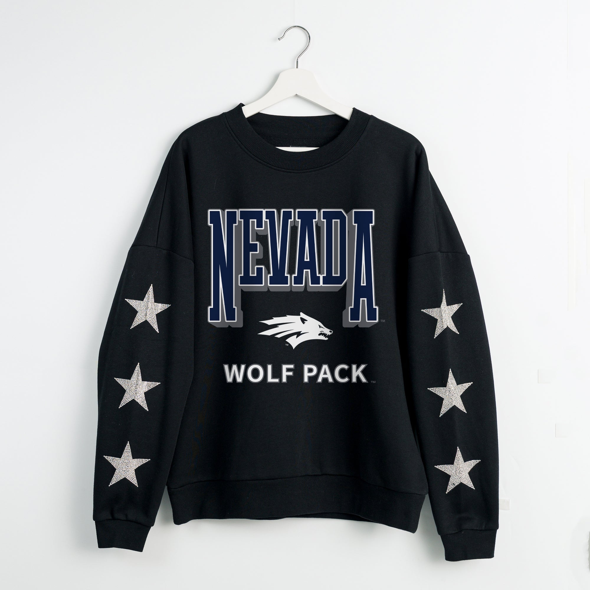 NEVADA WOLF PACK PURE VICTORY EMBELLISHED STAR SLEEVE CREWNECK PULLOVER