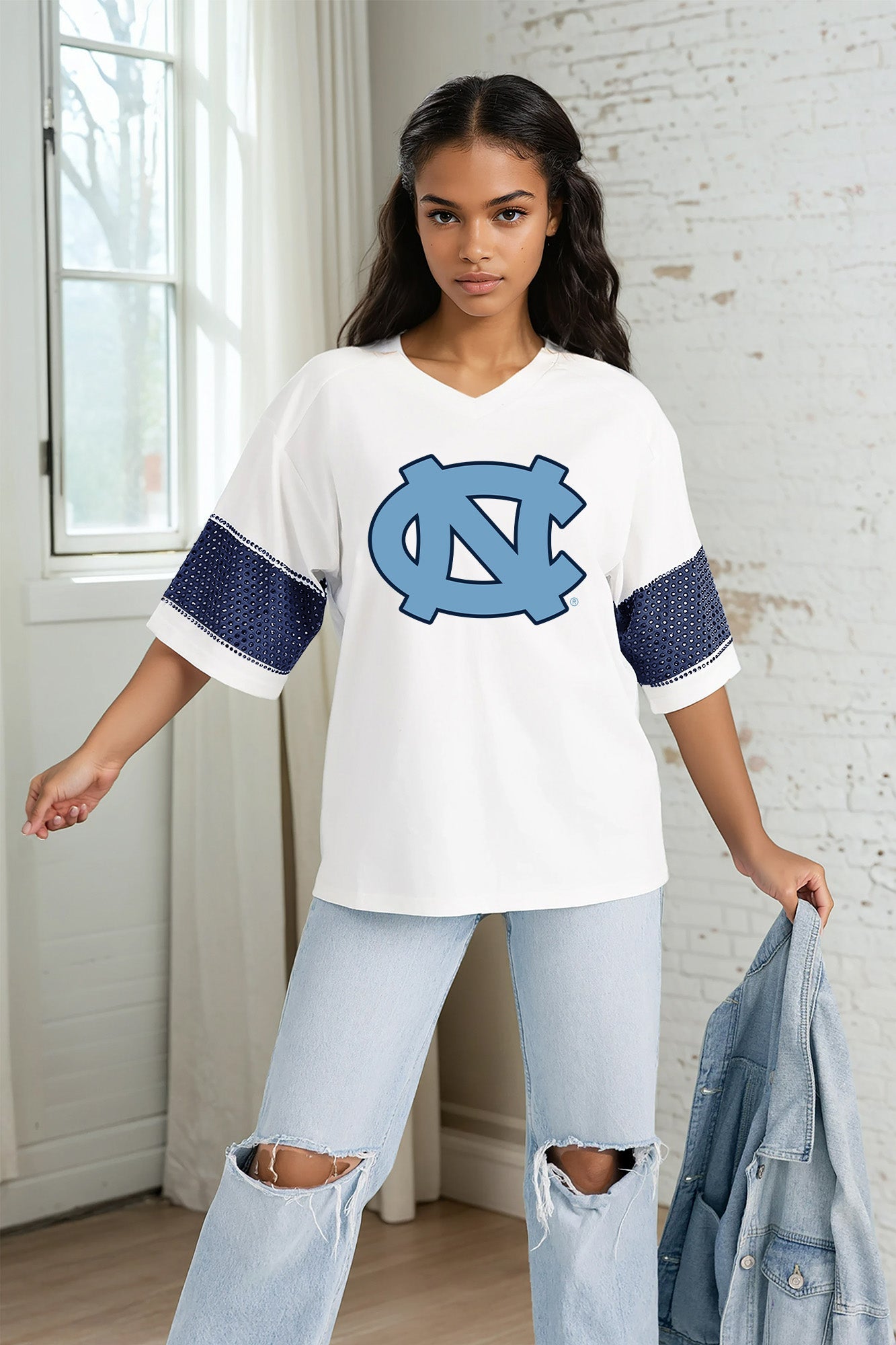 NORTH CAROLINA TAR HEELS DOMINANCE RHINESTONE STRIPE VARSITY TEE
