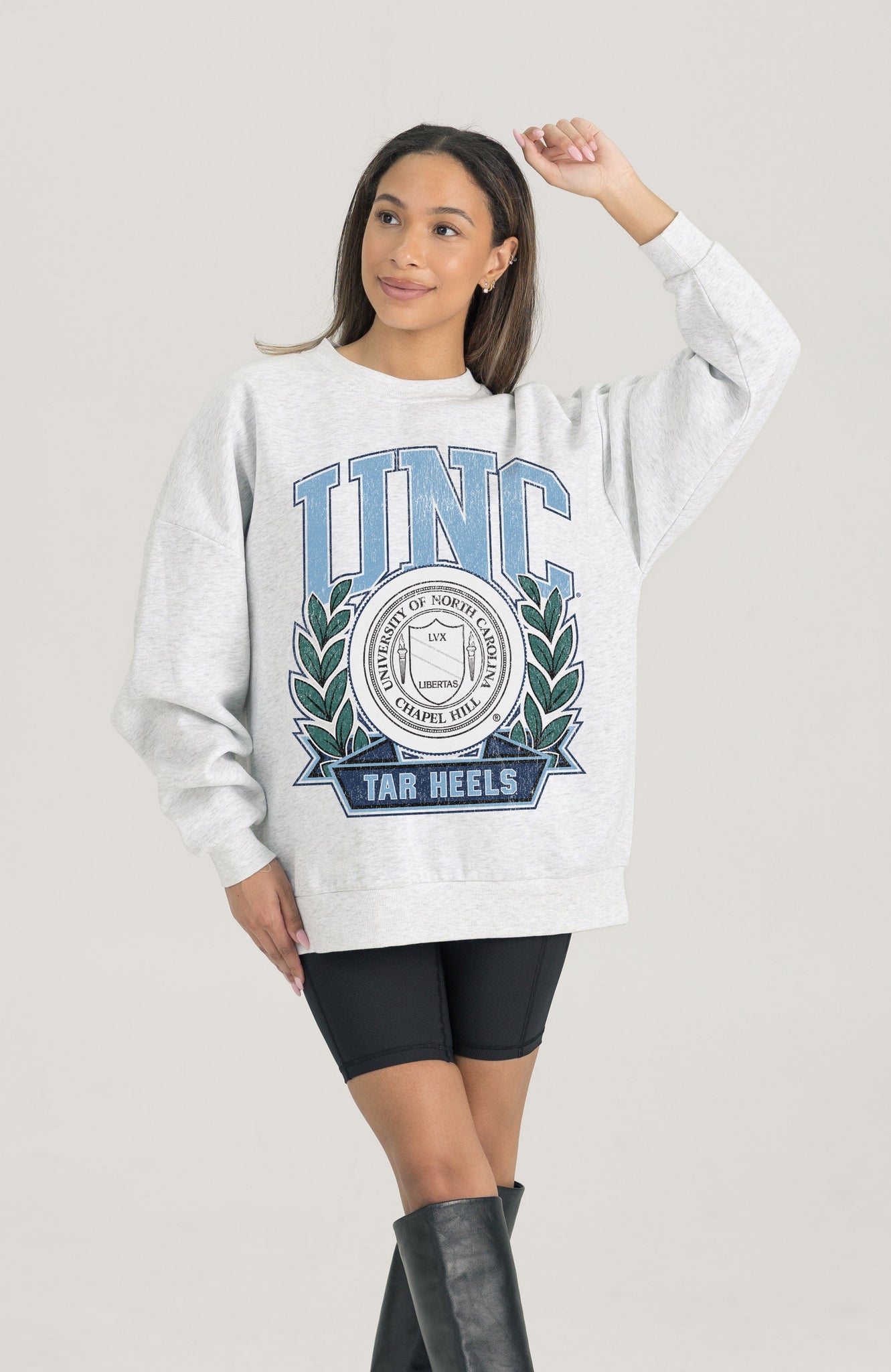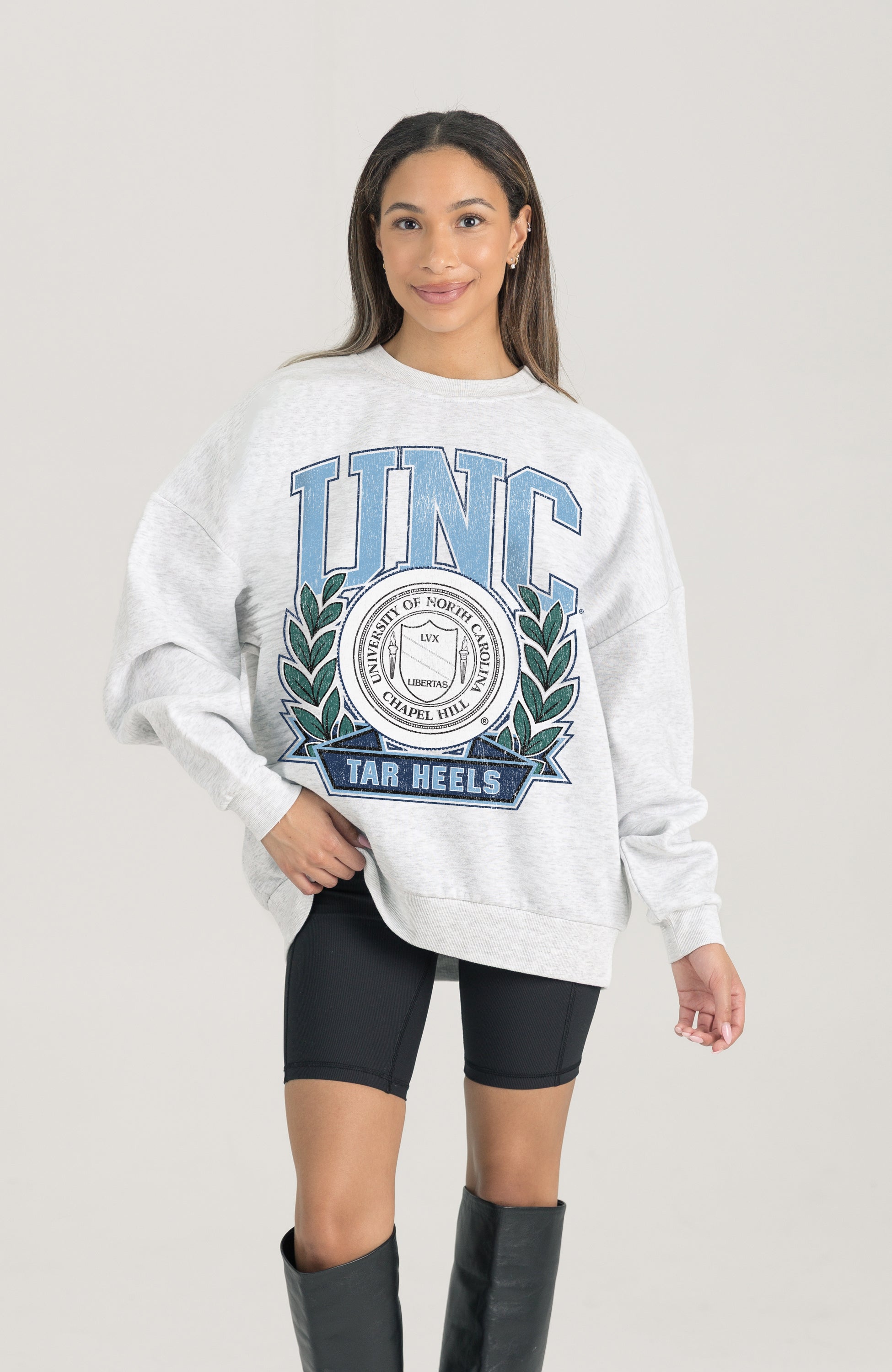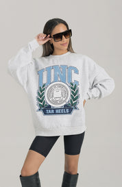 Stand out from the crowd in our North Carolina Tar Heels premium fleece long sleeve sweatshirt. Boasting an oversized fit, crewneck and ribbed knit neckline, wrists, and waistband, it effortlessly blends comfort with fashion. Show your support for your favorite school or team in this irresistibly soft sweatshirt.