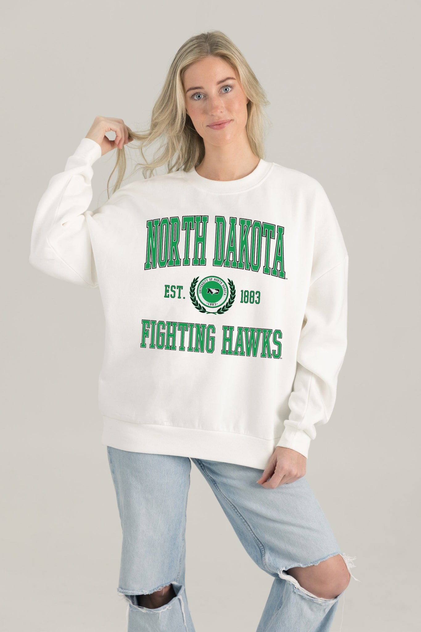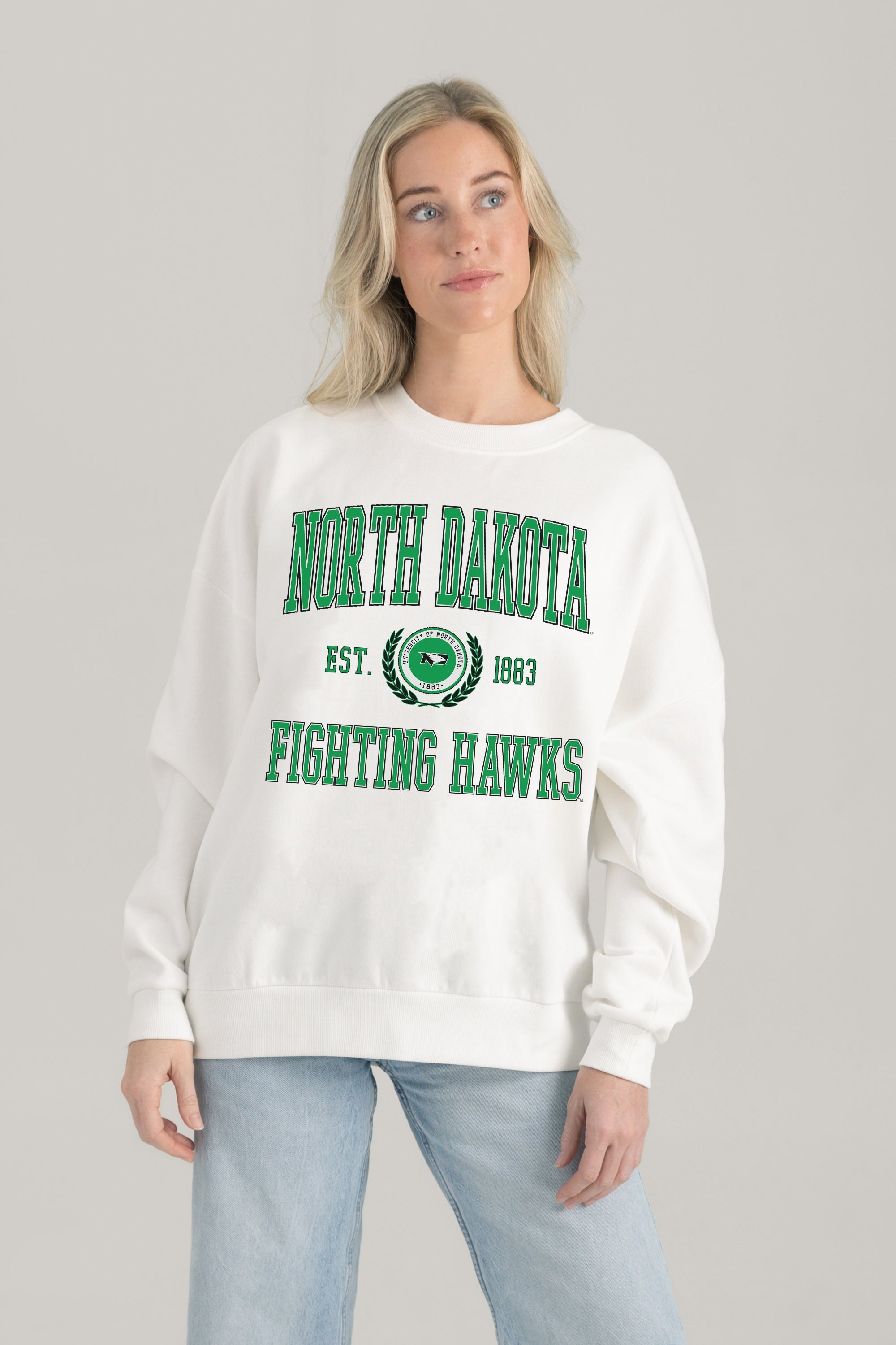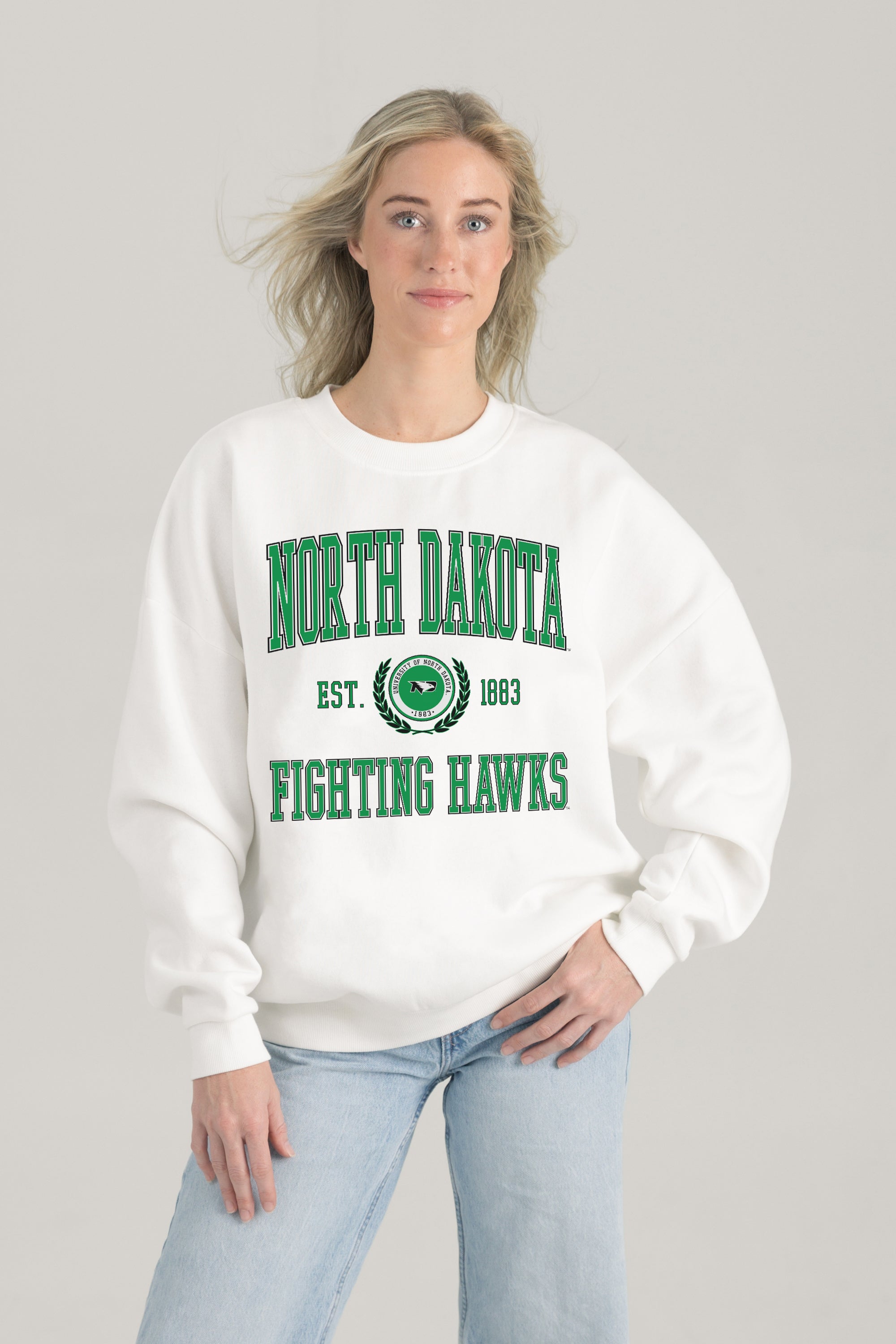 Stand out from the crowd in our North Dakota Fighting Hawks premium fleece long sleeve sweatshirt. Boasting an oversized fit, crewneck and ribbed knit neckline, wrists, and waistband, it effortlessly blends comfort with fashion. Show your support for your favorite school or team in this irresistibly soft sweatshirt.