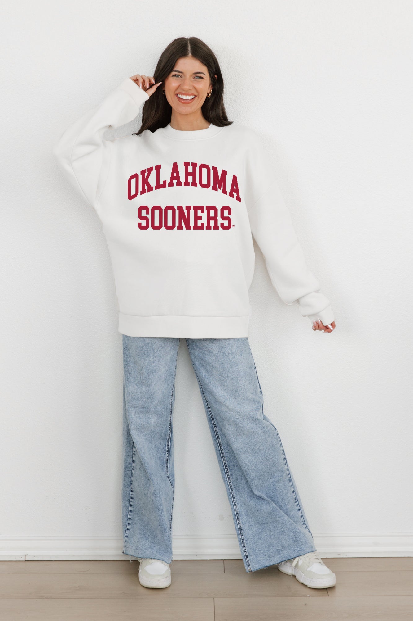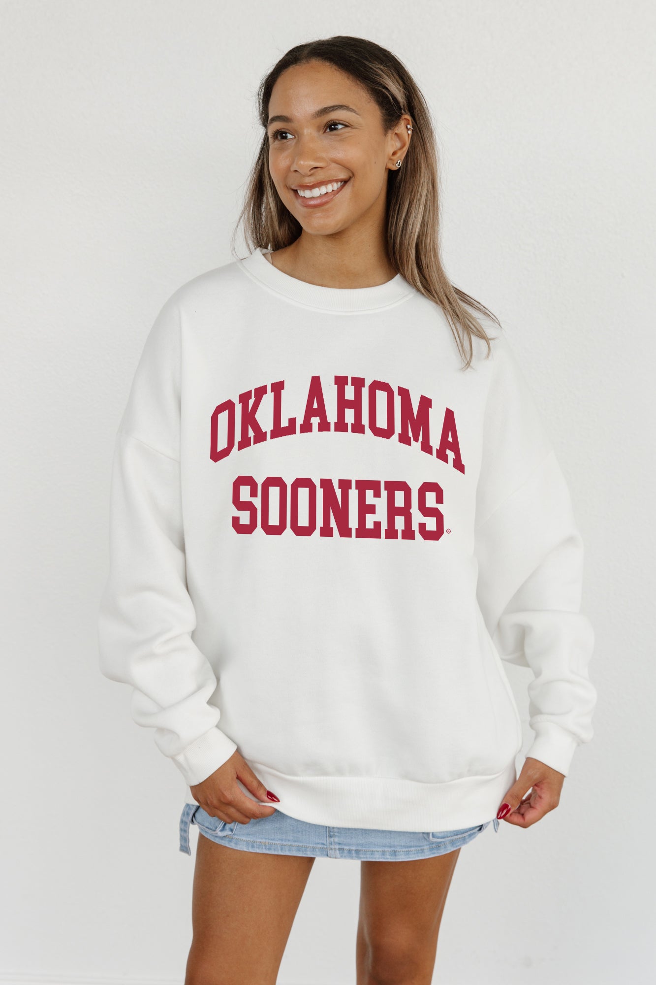 Stand out from the crowd in our Oklahoma Sooners premium fleece long sleeve sweatshirt. Boasting an oversized fit, crewneck and ribbed knit neckline, wrists, and waistband, it effortlessly blends comfort with fashion. Show your support for your favorite school or team in this irresistibly soft sweatshirt.