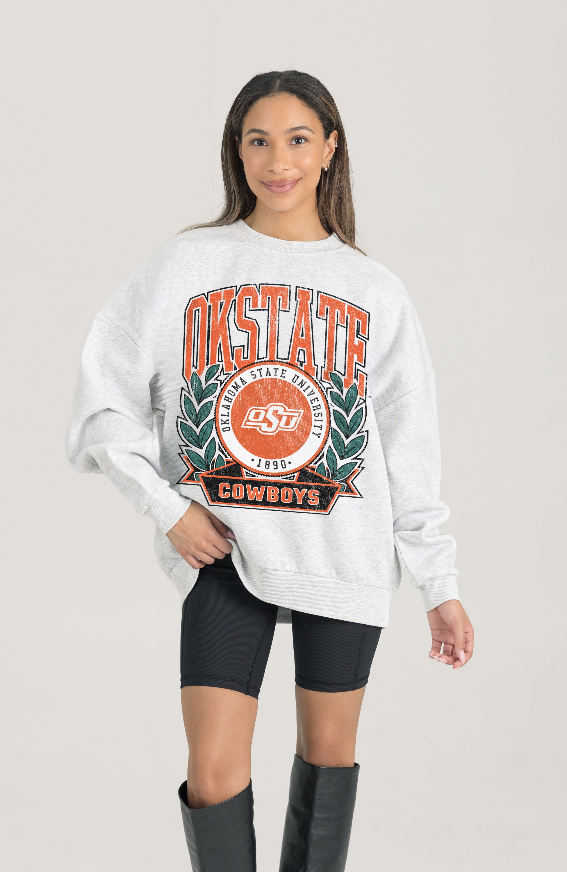 Stand out from the crowd in our Oklahoma State Cowboys premium fleece long sleeve sweatshirt. Boasting an oversized fit, crewneck and ribbed knit neckline, wrists, and waistband, it effortlessly blends comfort with fashion. Show your support for your favorite school or team in this irresistibly soft sweatshirt.