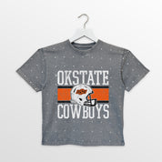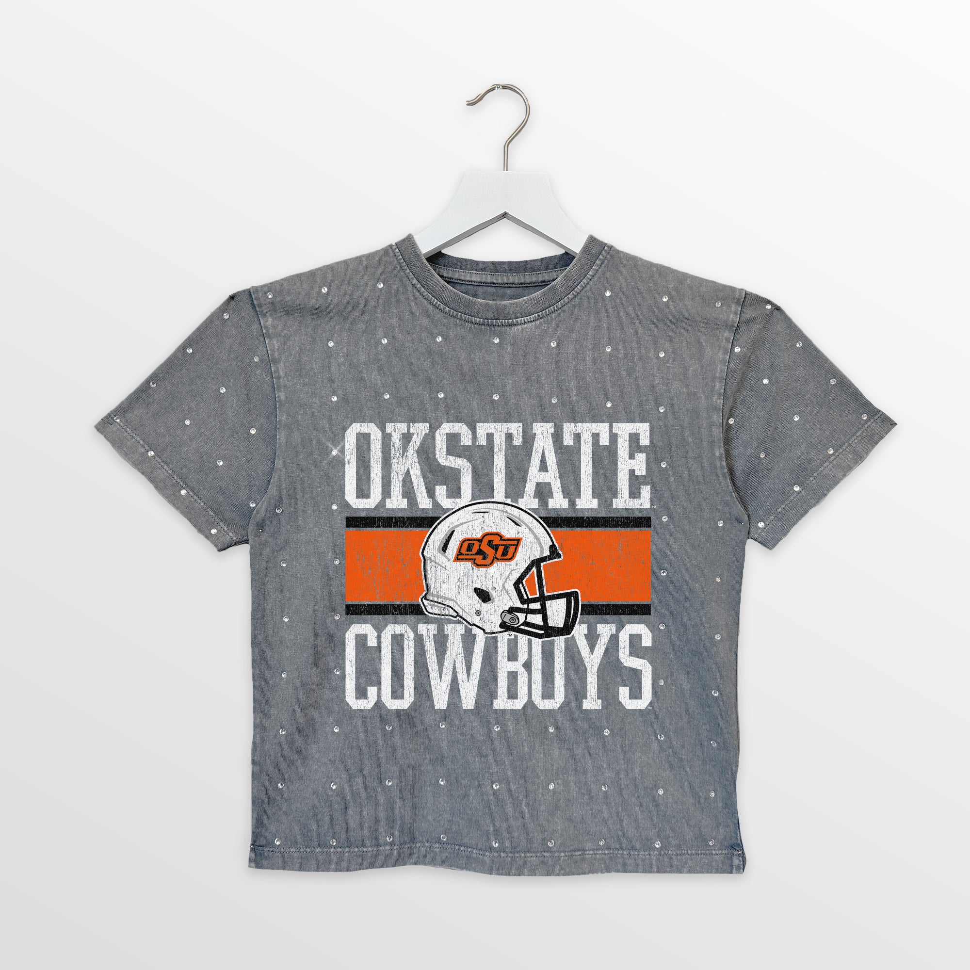 Make a statement in any crowd with our Oklahoma State Cowboys oversized fit, all-over mini rhinestone short sleeve tee featuring a ribbed neckline. Embrace the sparkle while staying comfortable—perfect for every dedicated fan.