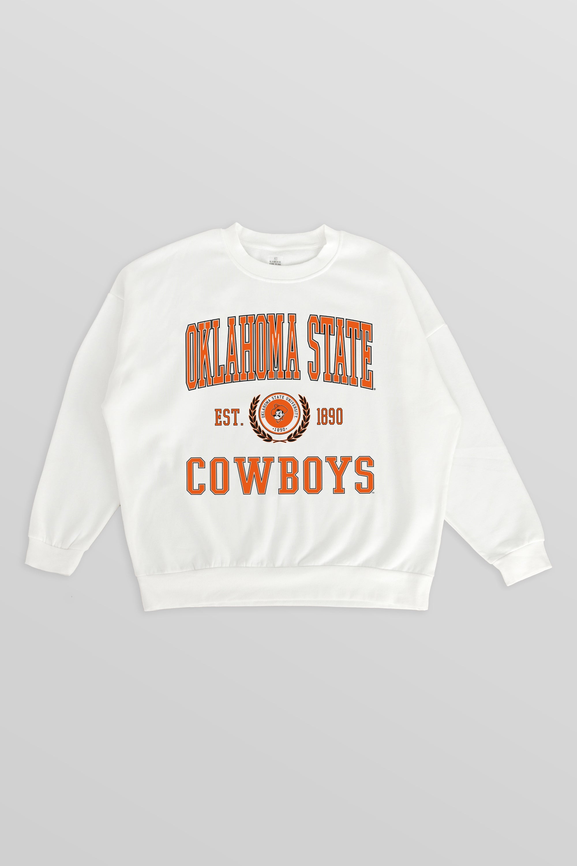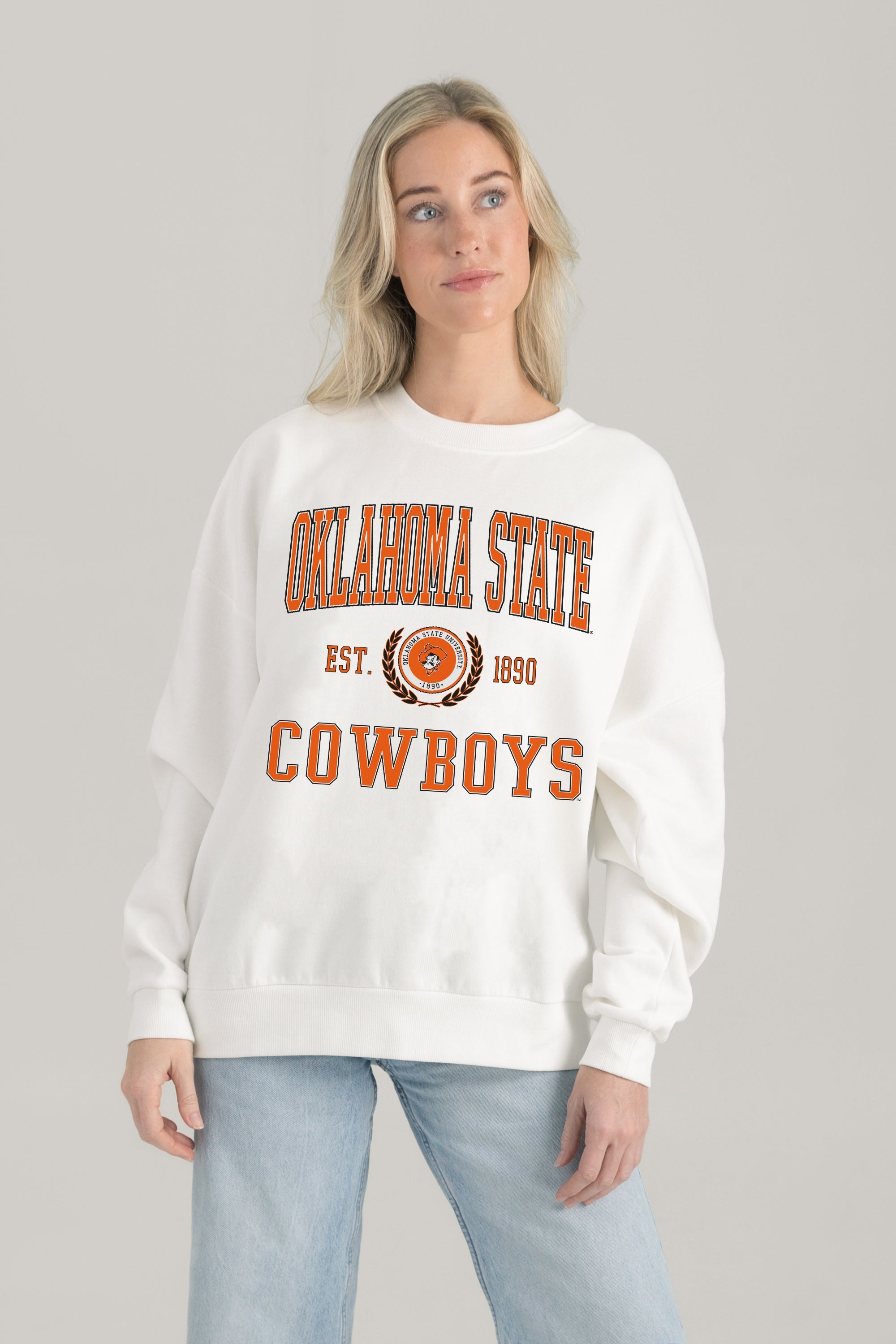 Stand out from the crowd in our Oklahoma State Cowboys premium fleece long sleeve sweatshirt. Boasting an oversized fit, crewneck and ribbed knit neckline, wrists, and waistband, it effortlessly blends comfort with fashion. Show your support for your favorite school or team in this irresistibly soft sweatshirt.