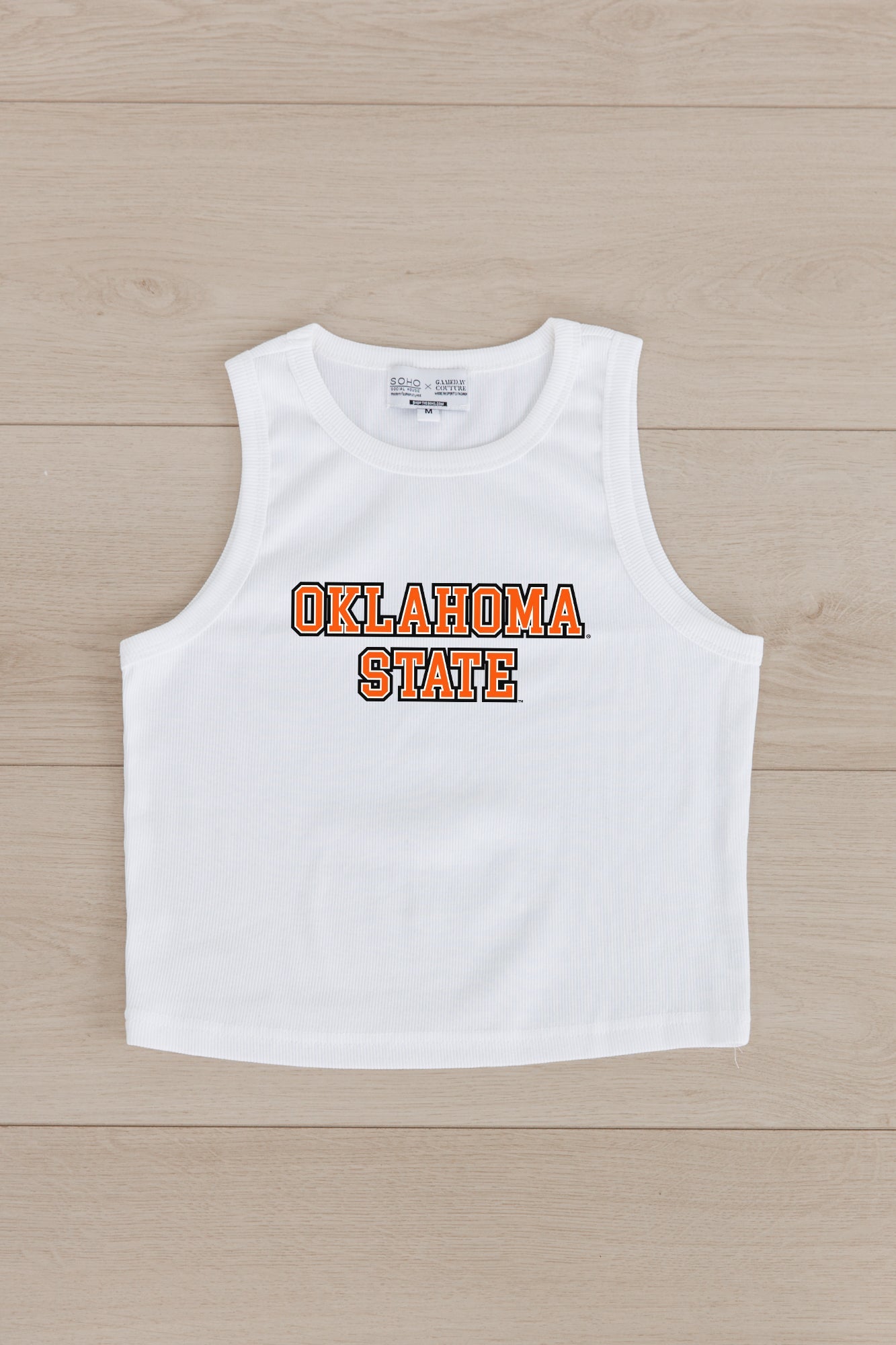 This essential ribbed crop tank by Madi Prewett Troutt is perfect for game day or everyday wear. Cheer on the Oklahoma State Cowboys with this winning style. The ribbed fabric is soft and comfortable, and the cropped length is perfect for pairing with high-waisted jeans or shorts.