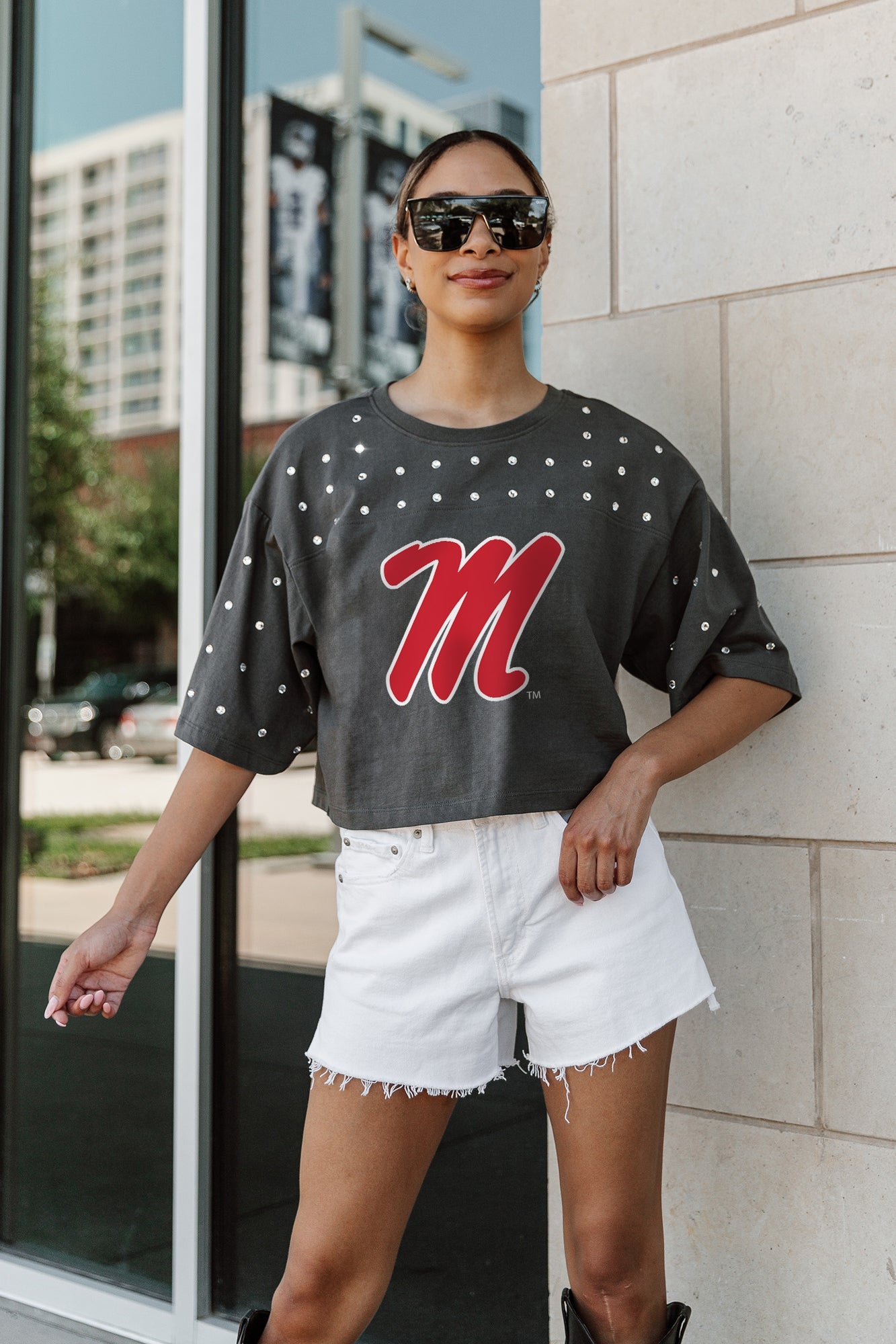 OLE MISS REBELS Making Moves Rhinestone Crop Tee With Yoke