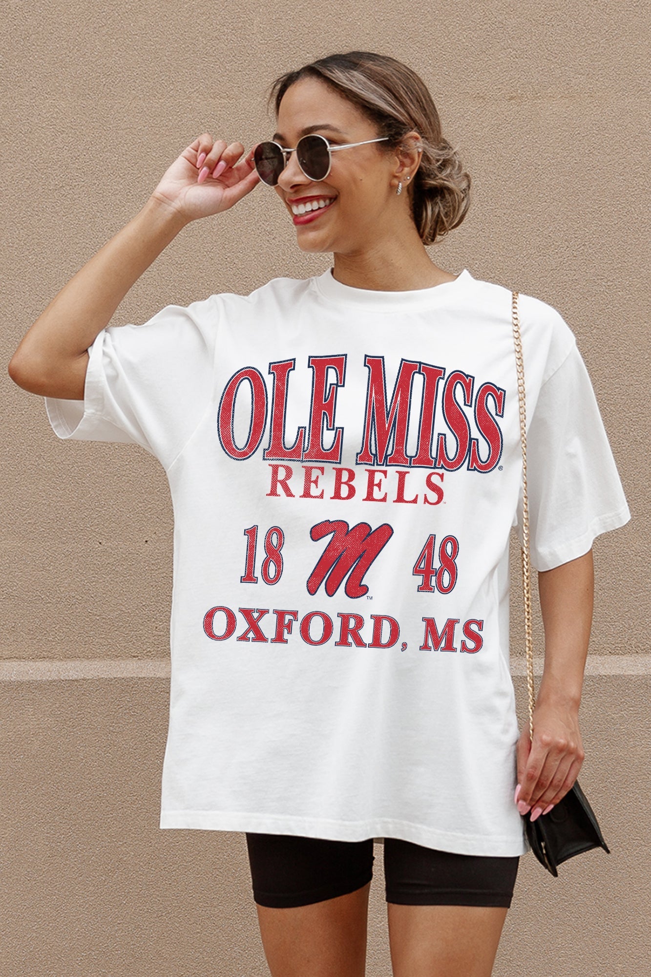 Whether you're cheering on your team from the sidelines or enjoying the festivities at the tailgate, our Ole Miss Rebels Unity Oversized Crewneck Teeis sure to keep you looking and feeling fabulous all season long. Join the fashion game and make every game day unforgettable!