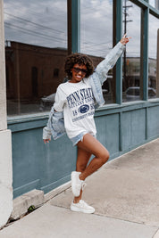 Whether you're cheering on your team from the sidelines or enjoying the festivities at the tailgate, our Penn State Nittany Lions Unity Oversized Crewneck Teeis sure to keep you looking and feeling fabulous all season long. Join the fashion game and make every game day unforgettable!