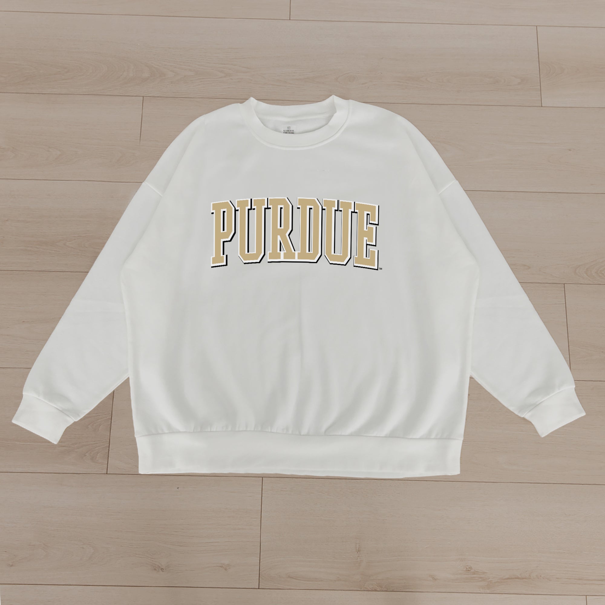 Stand out from the crowd in our Purdue Boilermakers premium fleece long sleeve sweatshirt. Boasting an oversized fit, crewneck and ribbed knit neckline, wrists, and waistband, it effortlessly blends comfort with fashion. Show your support for your favorite school or team in this irresistibly soft sweatshirt.