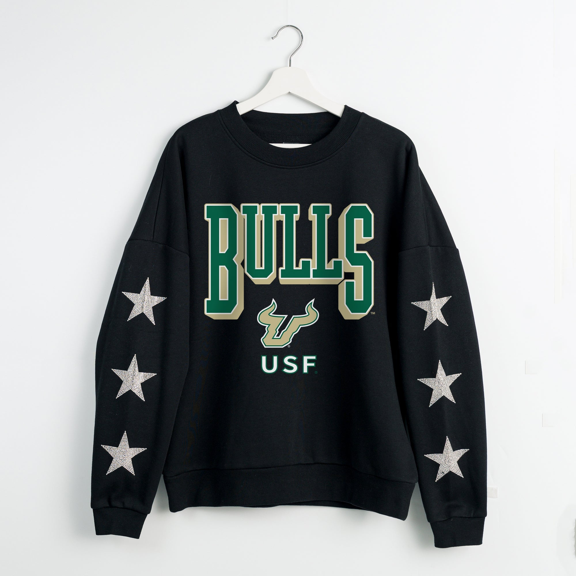 Elevate gameday with our South Florida Bulls drop shoulder, long sleeve fleece pullover adorned with rhinestud stars on the sleeves. Shine brightly and show your South Florida Bulls pride.
