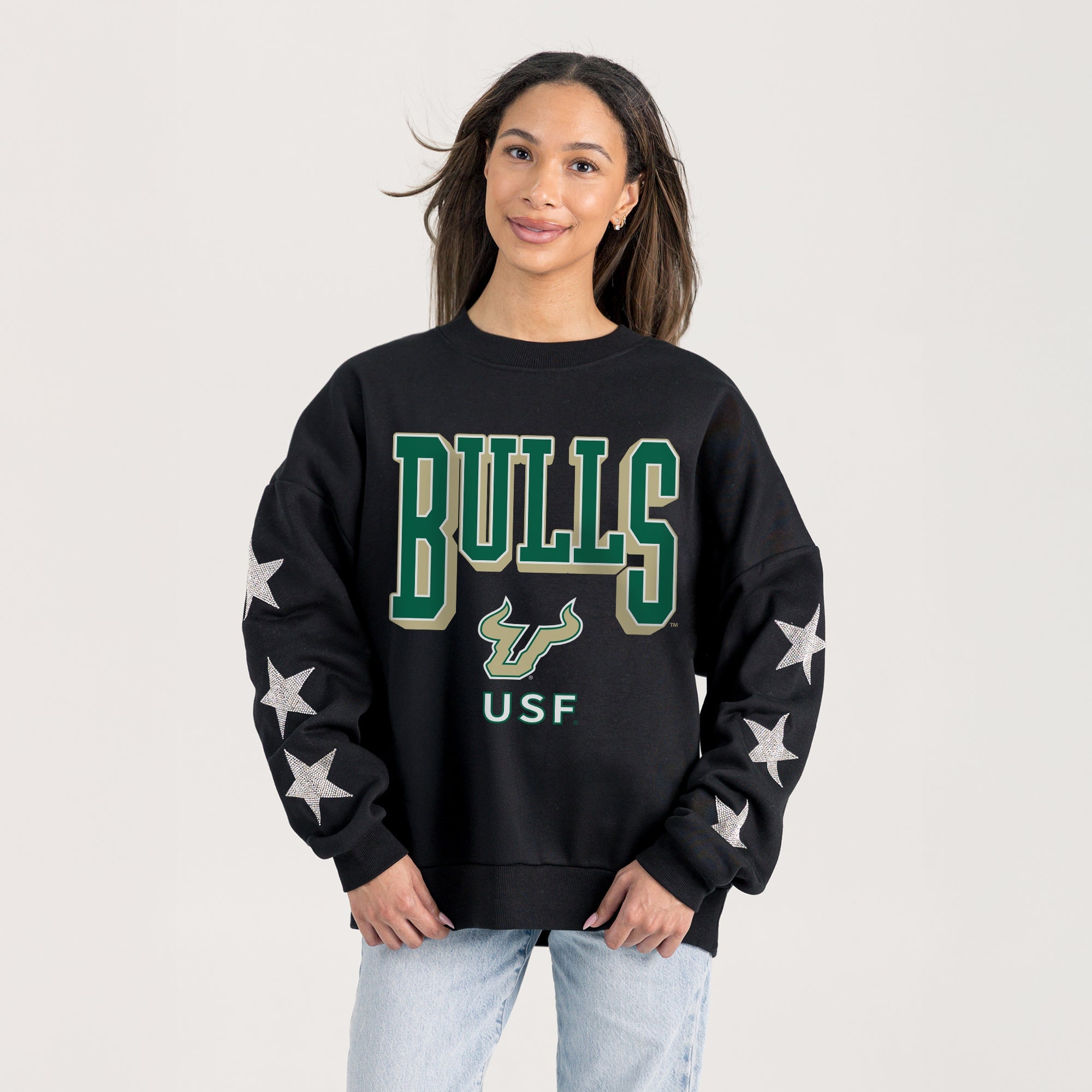 SOUTH FLORIDA BULLS PURE VICTORY EMBELLISHED STAR SLEEVE CREWNECK PULLOVER