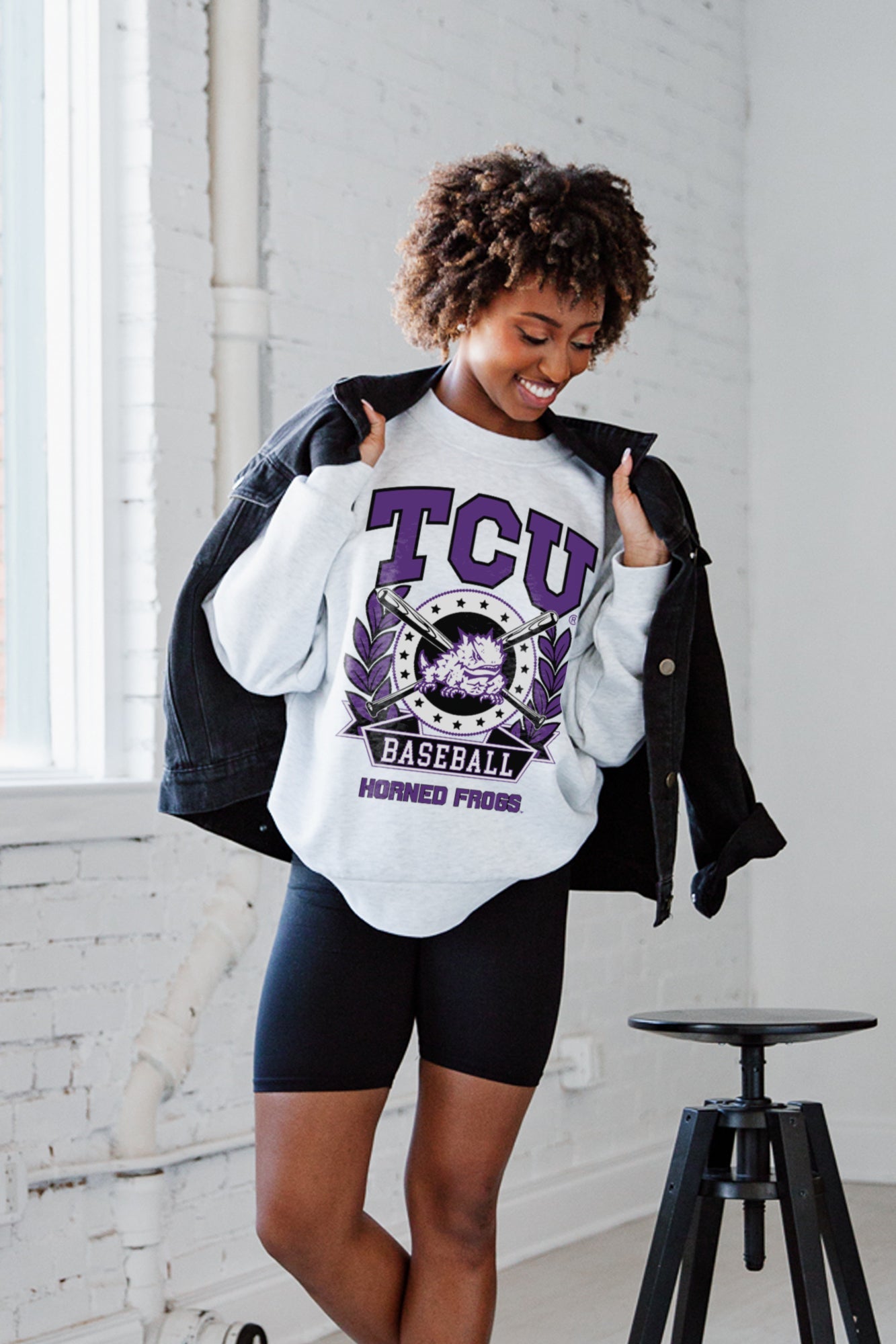 TCU HORNED FROGS Bases Loaded Fleece Drop-Shoulder Crew