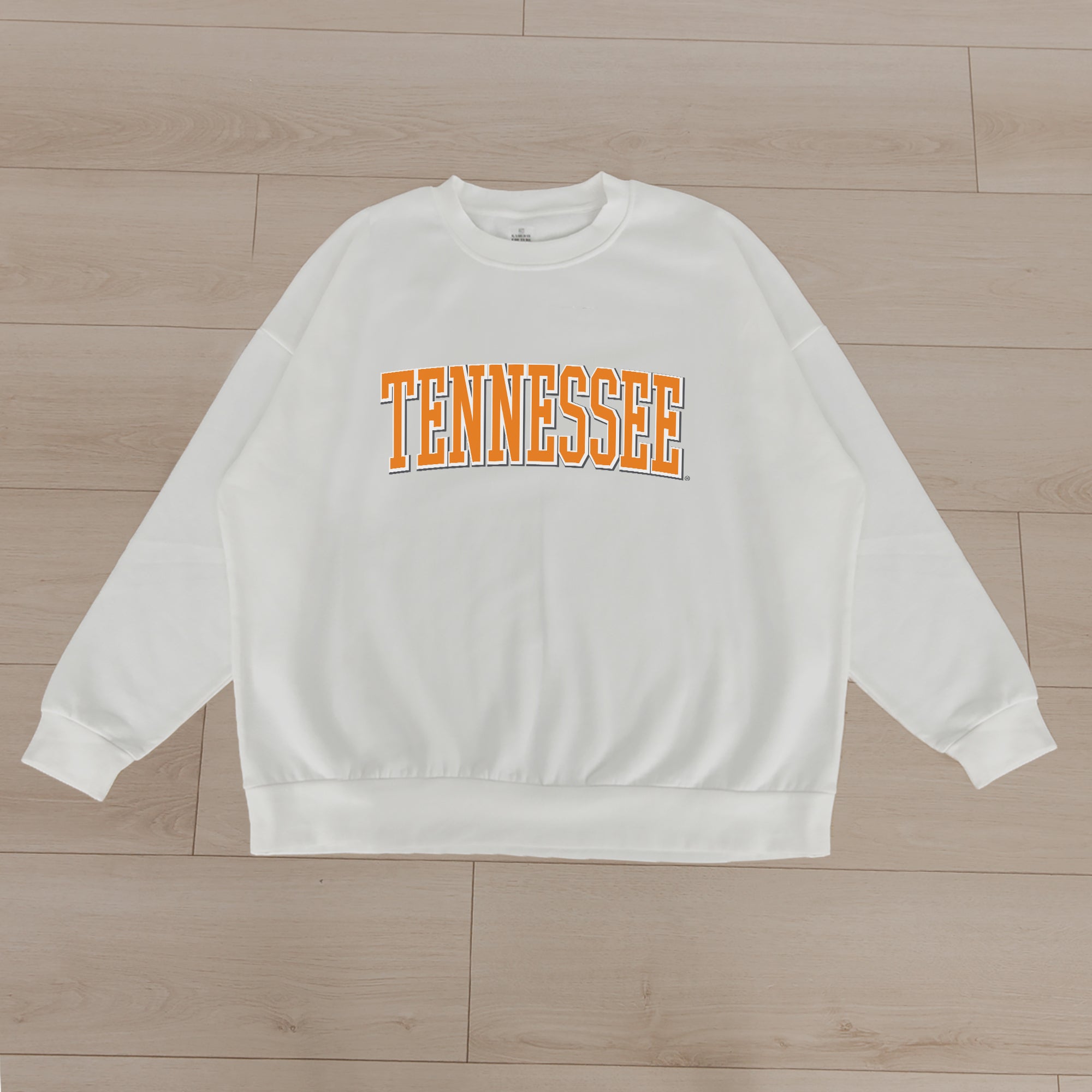 Stand out from the crowd in our Tennessee Volunteers premium fleece long sleeve sweatshirt. Boasting an oversized fit, crewneck and ribbed knit neckline, wrists, and waistband, it effortlessly blends comfort with fashion. Show your support for your favorite school or team in this irresistibly soft sweatshirt.