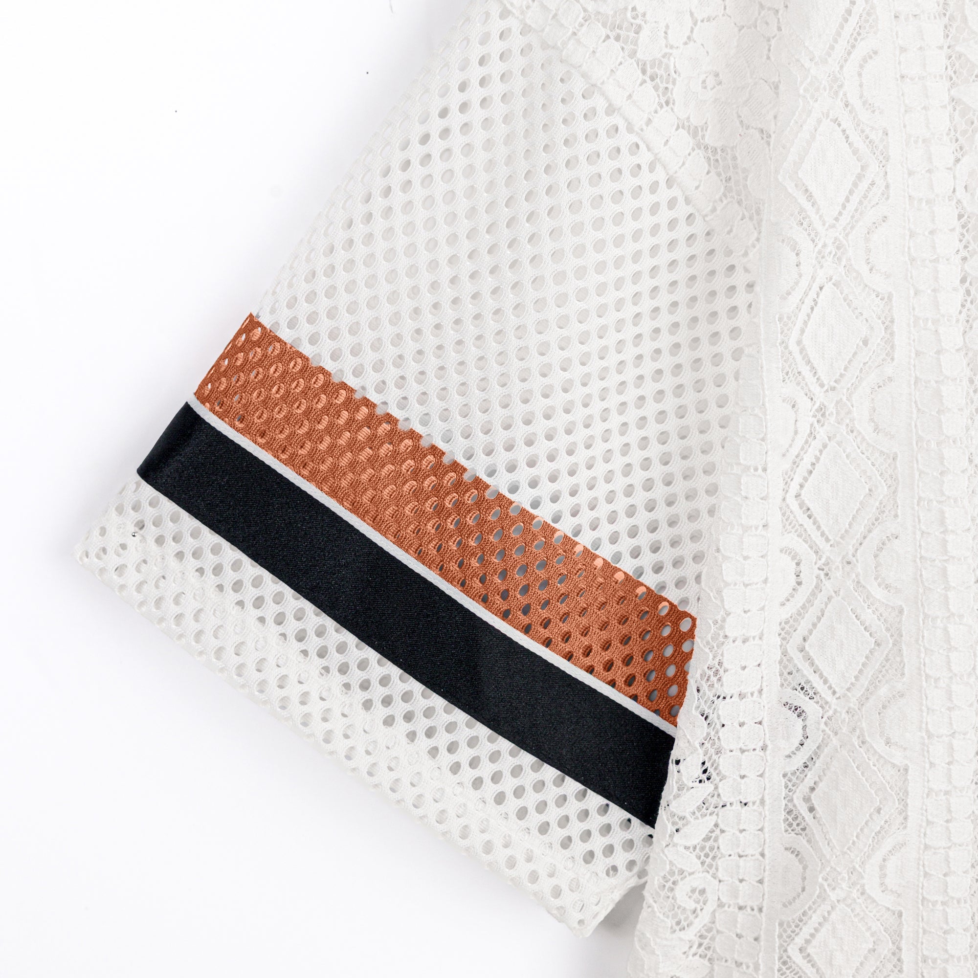 Bold, breathable, and completely unexpected, this lace jersey is a total scene-stealer. Featuring a full lace body, satin and embroidered team graphics, and printed sport stripes, it’s a glam-meets-game-day statement piece made to rep Texas Longhorns your way.