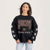 TEXAS STATE BOBCATS PURE VICTORY EMBELLISHED STAR SLEEVE CREWNECK PULLOVER