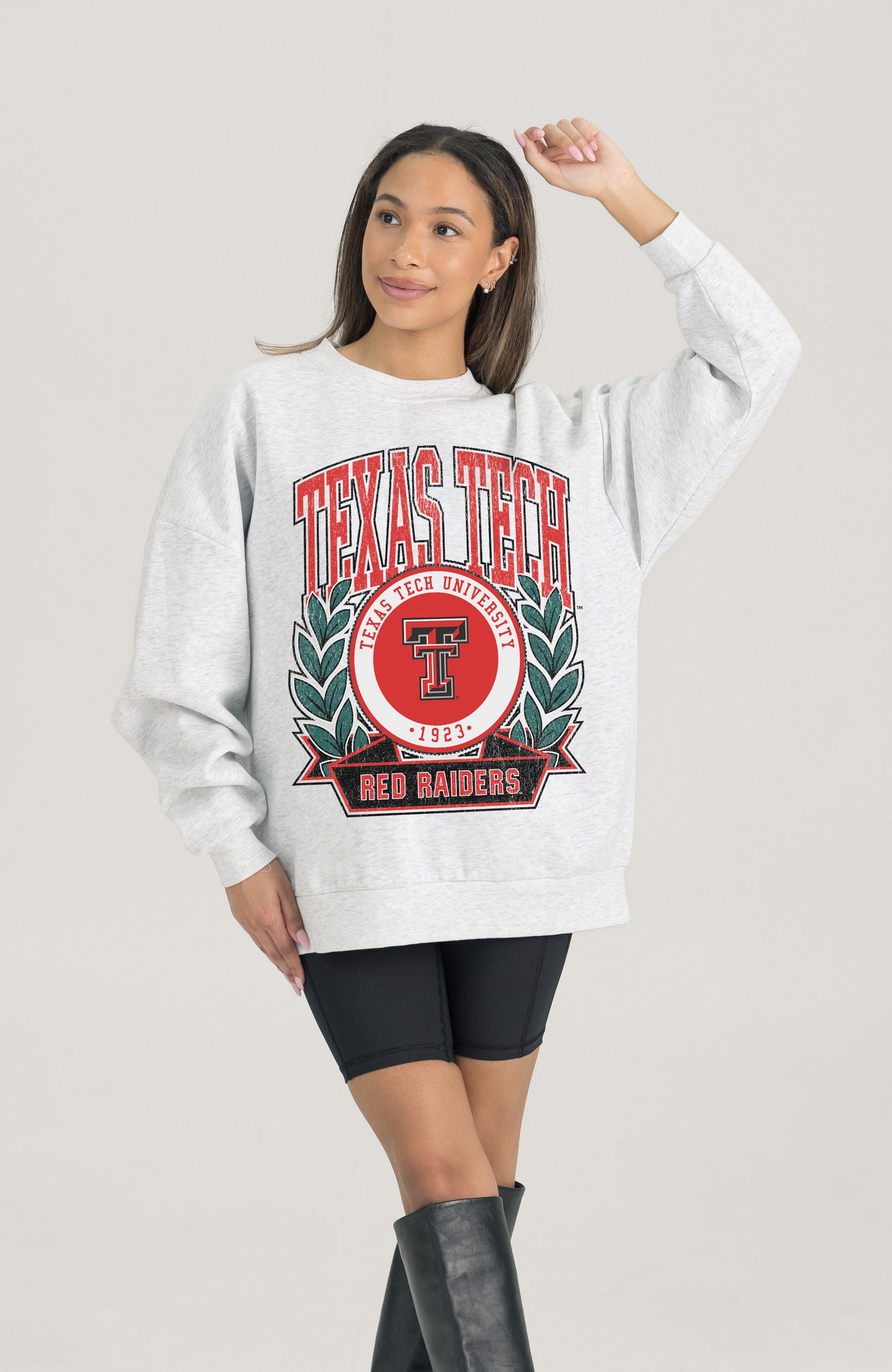 Stand out from the crowd in our Texas Tech Red Raiders premium fleece long sleeve sweatshirt. Boasting an oversized fit, crewneck and ribbed knit neckline, wrists, and waistband, it effortlessly blends comfort with fashion. Show your support for your favorite school or team in this irresistibly soft sweatshirt.