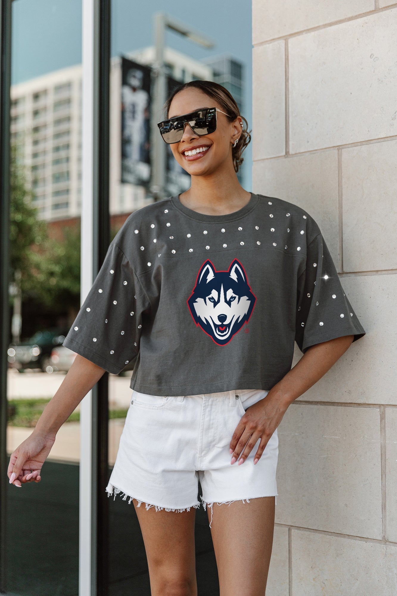 UCONN HUSKIES Making Moves Rhinestone Crop Tee With Yoke