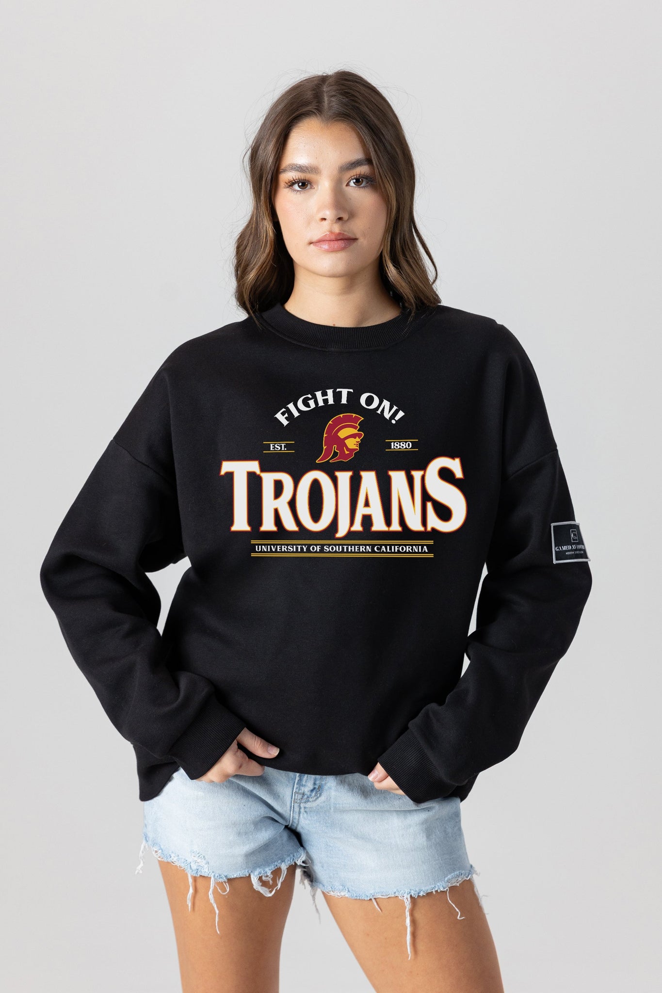 Get ready to cheer on your Usc Trojans with our black label premium fleece drop-shoulder crewneck with ribbed knit neckline, cuffs, and waistband. From the game to the everyday, this is your go-to choice.
