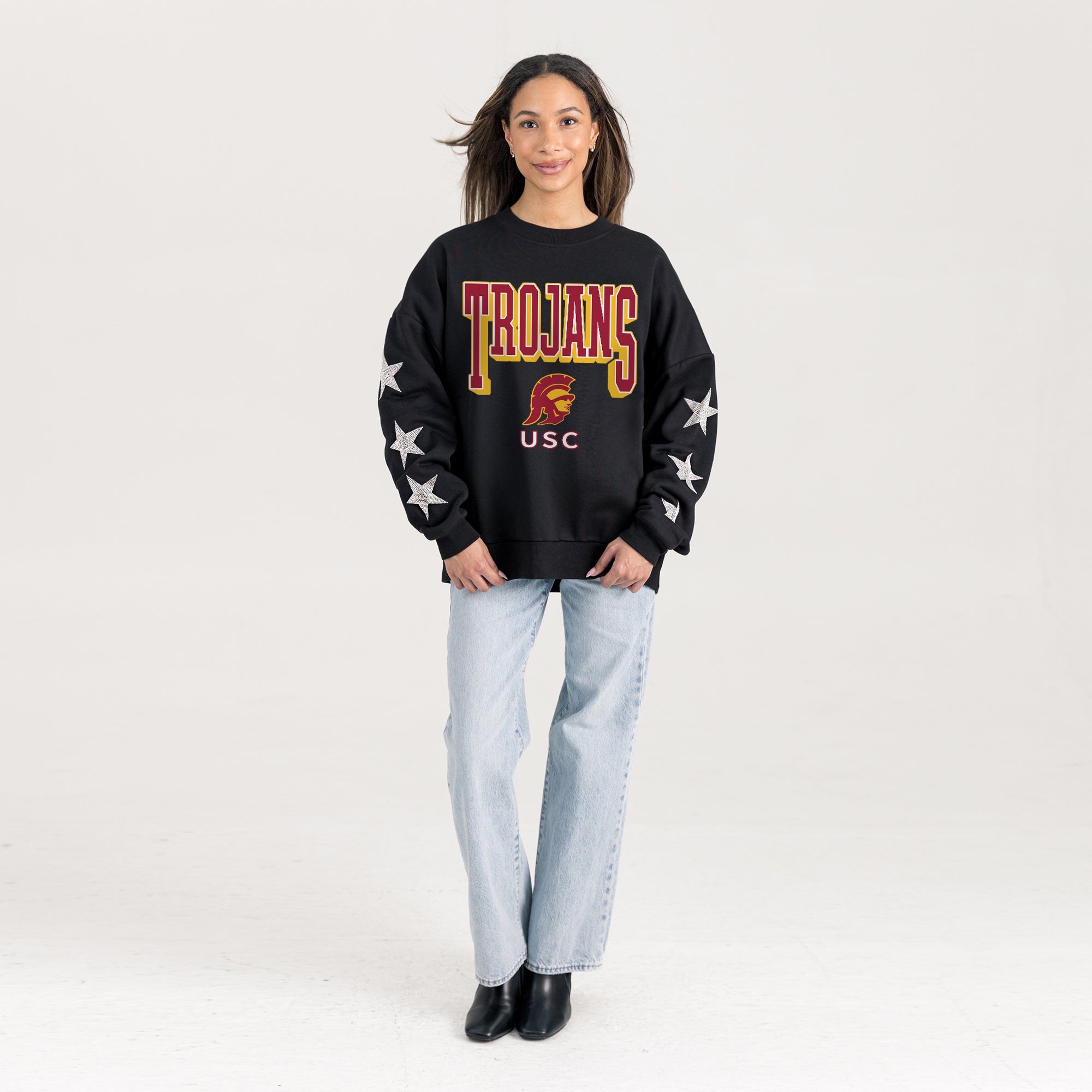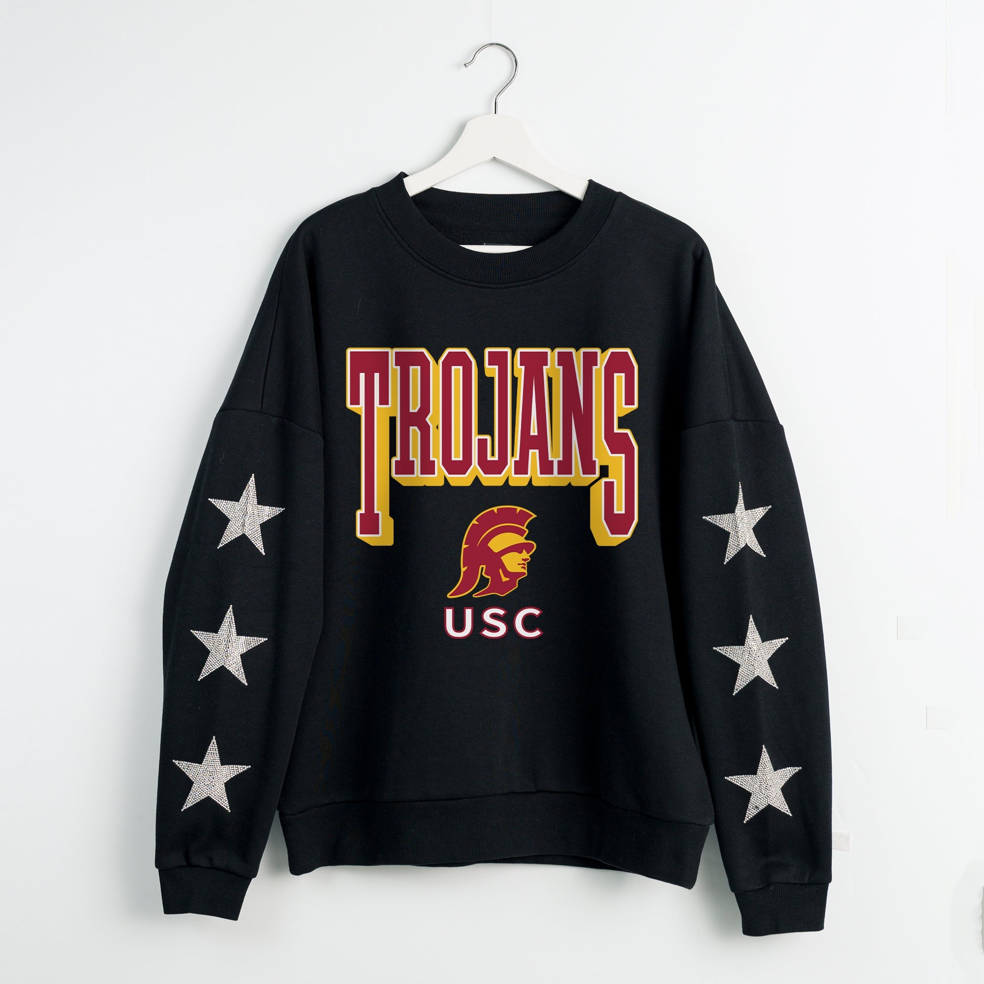USC TROJANS PURE VICTORY EMBELLISHED STAR SLEEVE CREWNECK PULLOVER