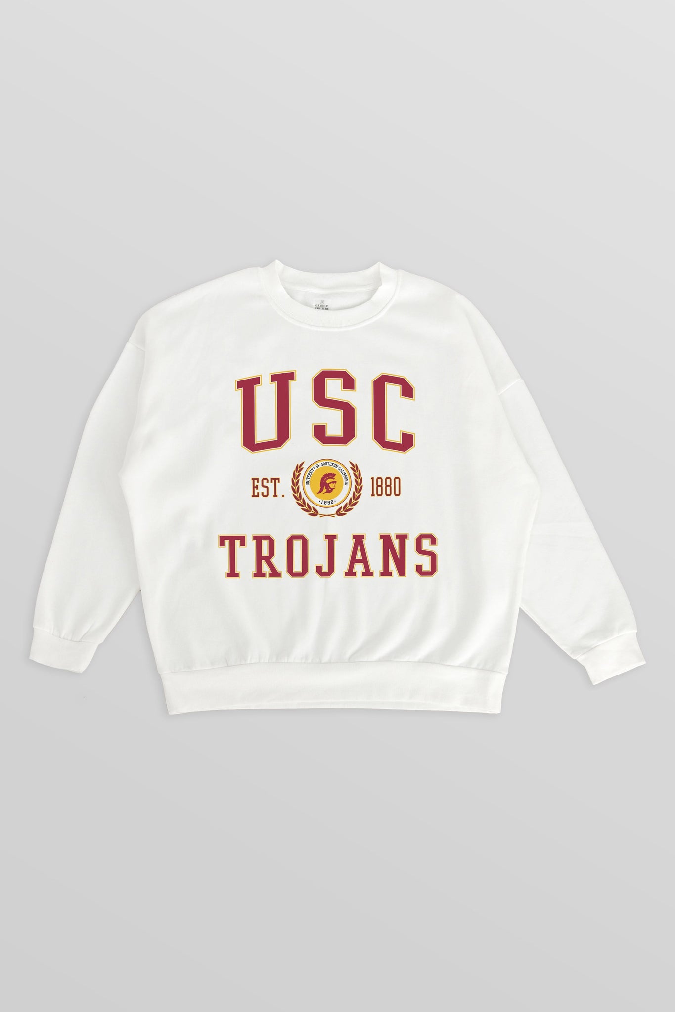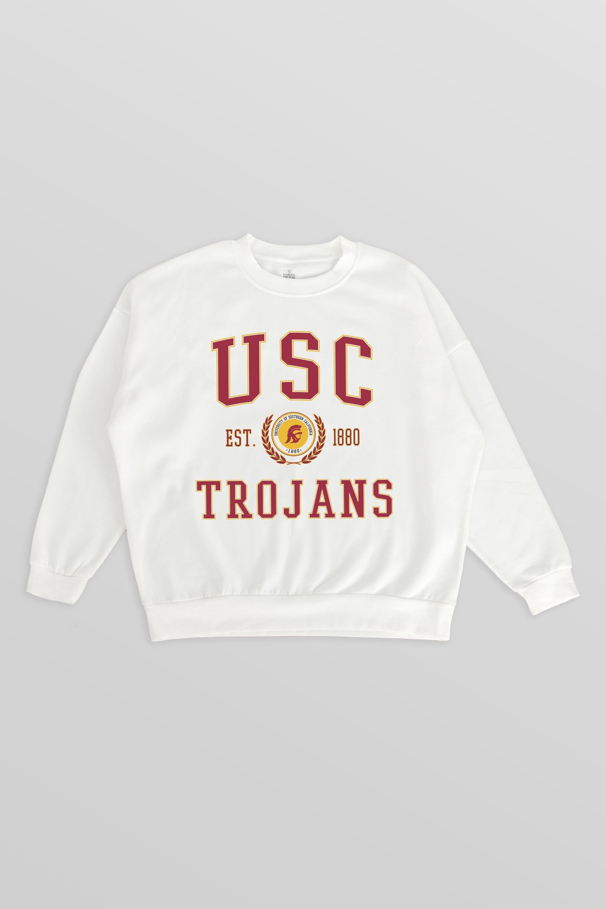 Stand out from the crowd in our Usc Trojans premium fleece long sleeve sweatshirt. Boasting an oversized fit, crewneck and ribbed knit neckline, wrists, and waistband, it effortlessly blends comfort with fashion. Show your support for your favorite school or team in this irresistibly soft sweatshirt.