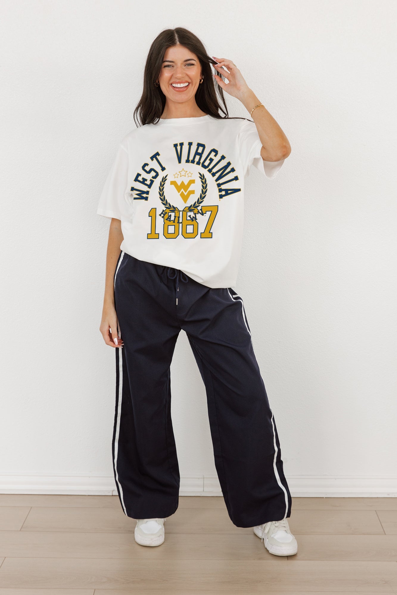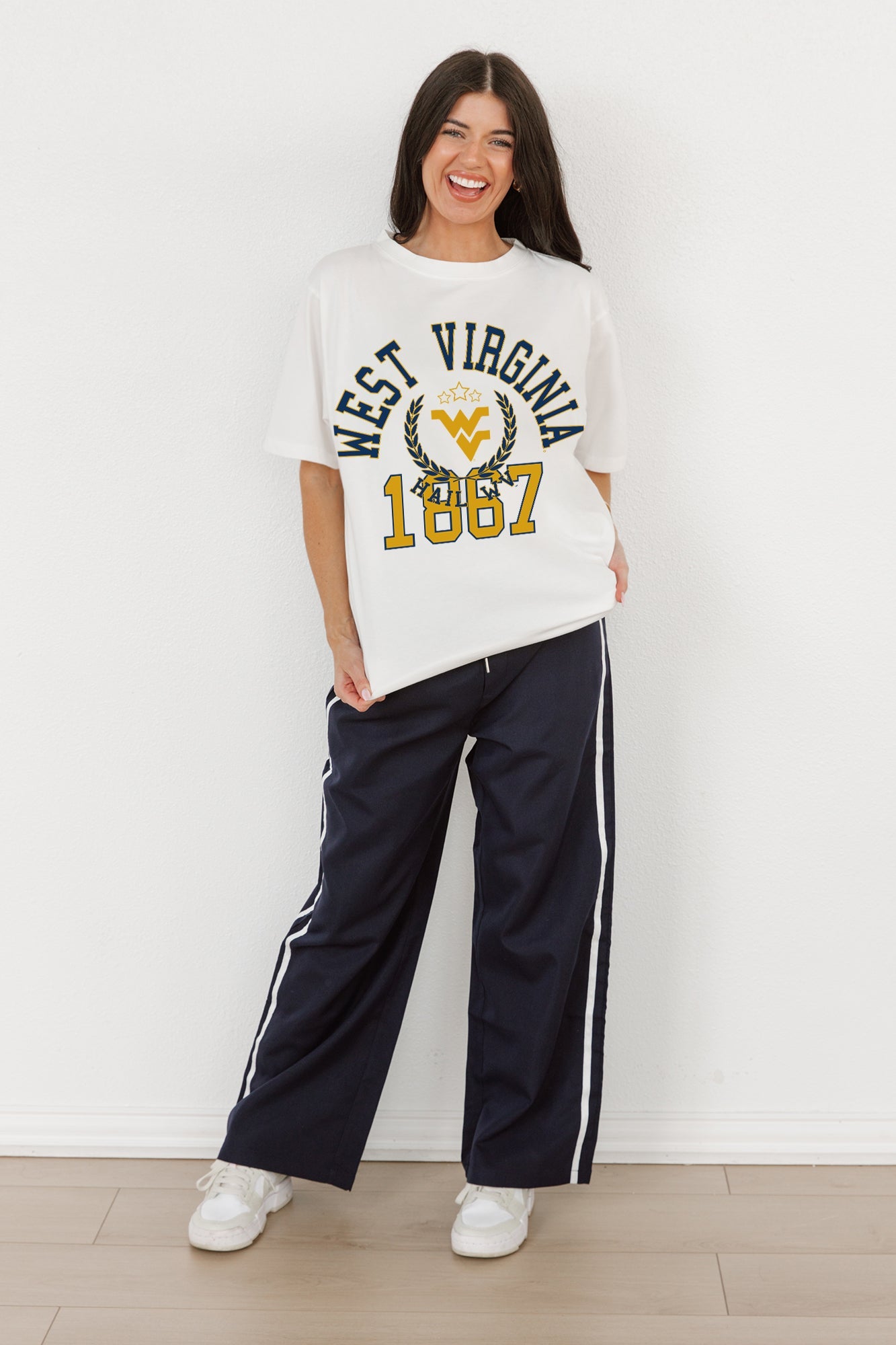 WEST VIRGINIA MOUNTAINEERS Go For Two Oversized Crewneck Tee By Madi Prewett Troutt