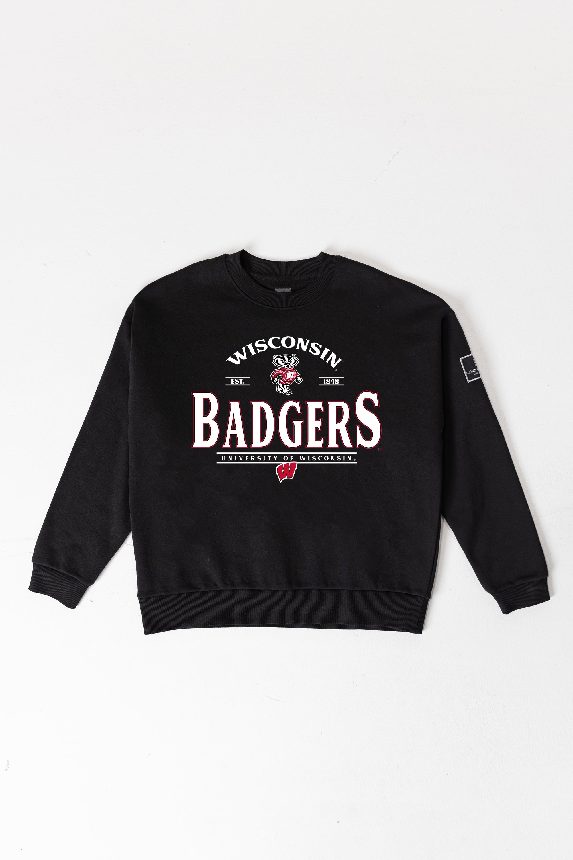 Get ready to cheer on your Wisconsin Badgers with our black label premium fleece drop-shoulder crewneck with ribbed knit neckline, cuffs, and waistband. From the game to the everyday, this is your go-to choice.