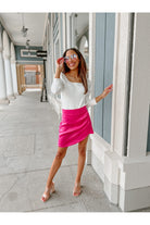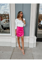 Make Friday nights more fun in the "Flaunt Puff Sleeve Bodysuit". Our knit bodysuit comes in white. Designed with a square neckline and a fitted body. Secured with a snap button closure.