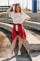 LET'S PLAY BALL IN TAN VINTAGE BOYFRIEND TEE