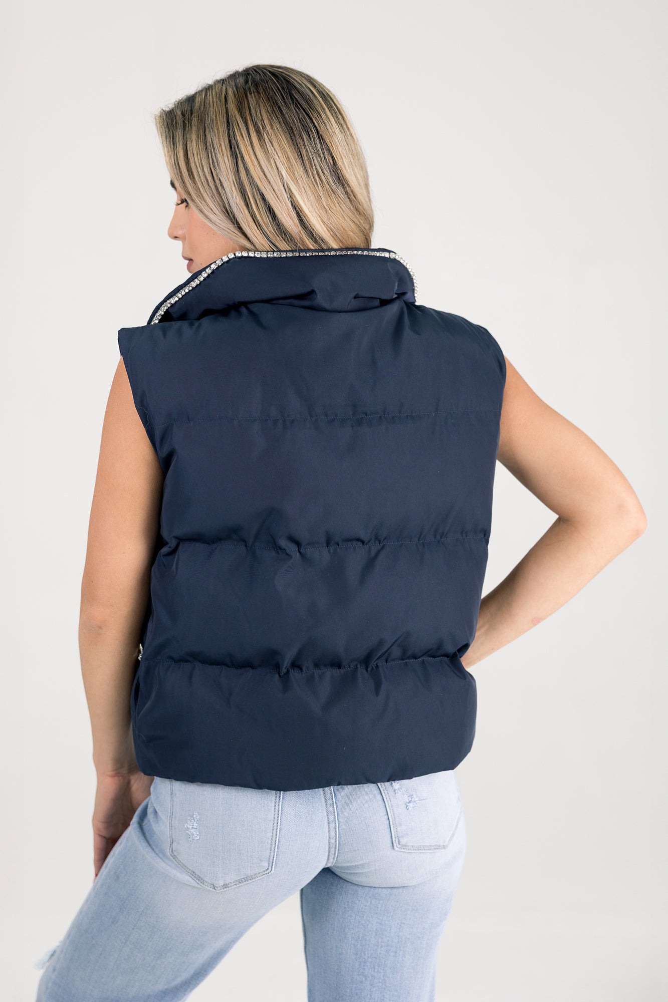 MAKE IT SHINE RHINESTONE DETAIL PUFFER VEST BY RANDI MAHOMES