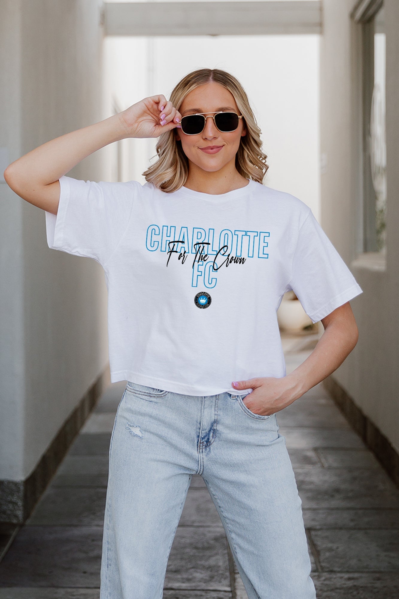 Every day is game day with our Charlotte Fc midi-length, boxy fit cropped tee with drop shoulder sleeves. Perfect for game day excitement or casual outings, this versatile tee is a must-have addition to your wardrobe.