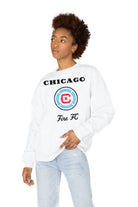 The model is wearing size small. Please refer to our size chart to find your perfect fit. The pullover is designed for a relaxed fit with drop shoulders for added comfort and style.