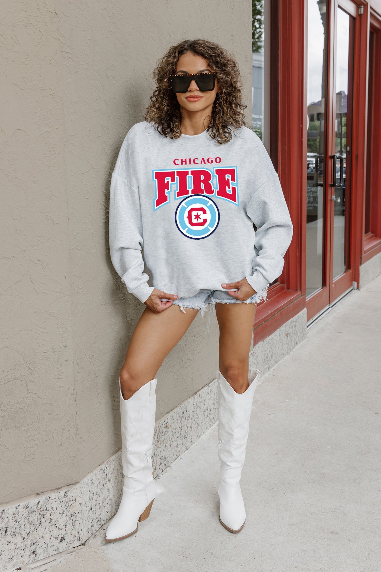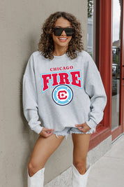 Stand out from the crowd in our Chicago Fire Sc premium fleece long sleeve sweatshirt. Boasting an oversized fit, crewneck and ribbed knit neckline, wrists, and waistband, it effortlessly blends comfort with fashion. Show your support for your favorite school or team in this irresistibly soft sweatshirt.