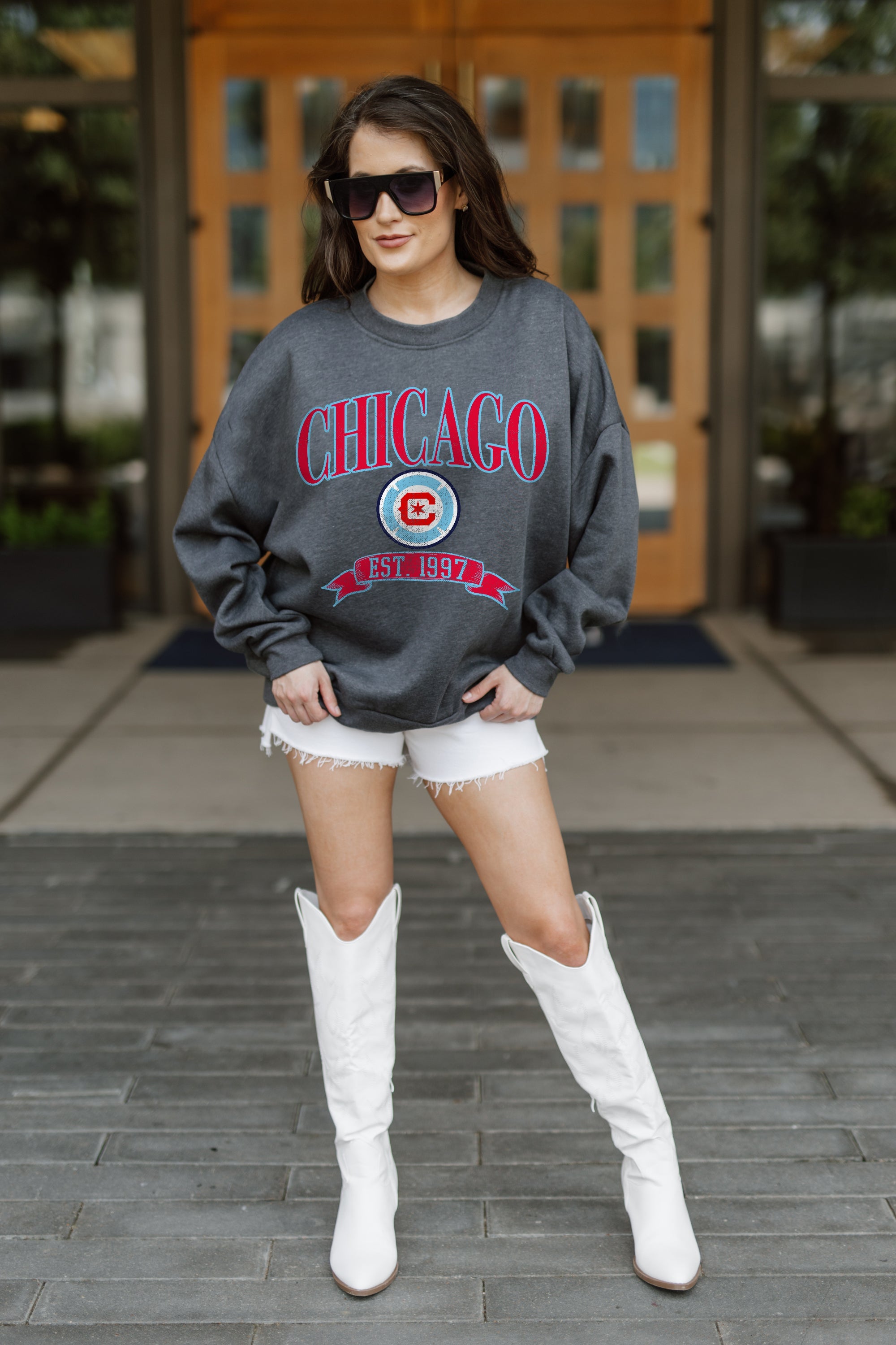 Stand out from the crowd in our Chicago Fire Sc premium fleece long sleeve sweatshirt. Boasting an oversized fit, crewneck and ribbed knit neckline, wrists, and waistband, it effortlessly blends comfort with fashion. Show your support for your favorite school or team in this irresistibly soft sweatshirt.
