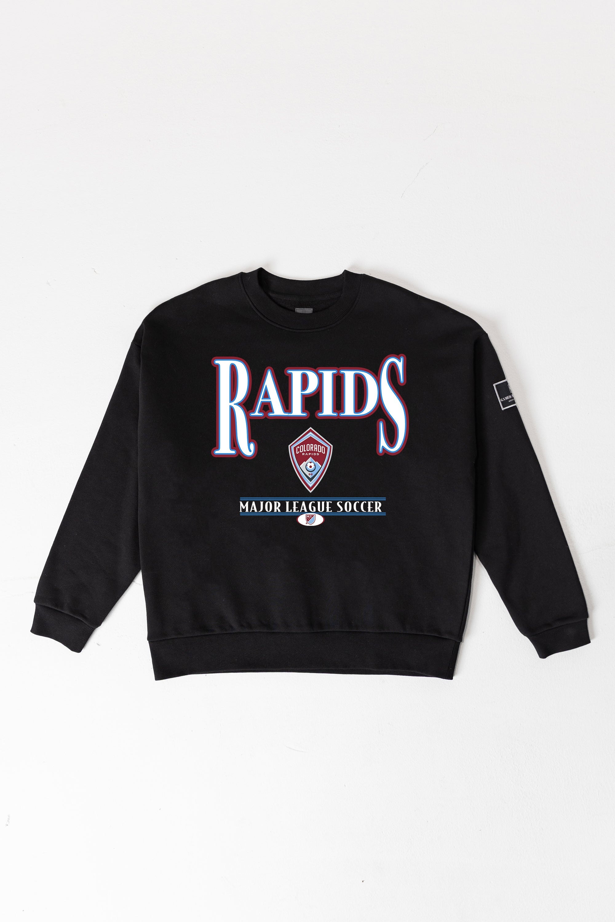 Get ready to cheer on your Colorado Rapids with our black label premium fleece drop-shoulder crewneck with ribbed knit neckline, cuffs, and waistband. From the game to the everyday, this is your go-to choice.