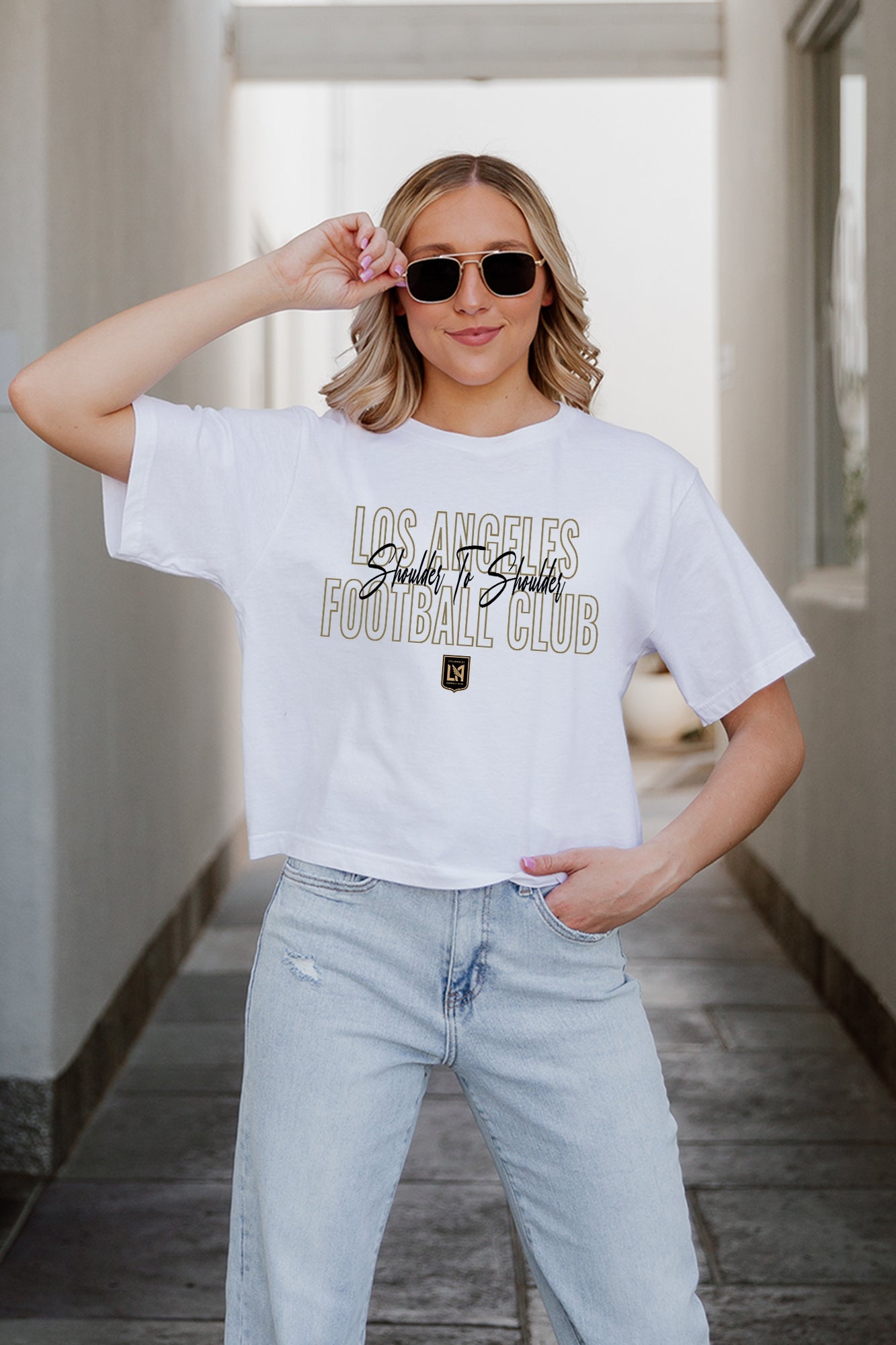 Every day is game day with our Los Angeles Fc midi-length, boxy fit cropped tee with drop shoulder sleeves. Perfect for game day excitement or casual outings, this versatile tee is a must-have addition to your wardrobe.