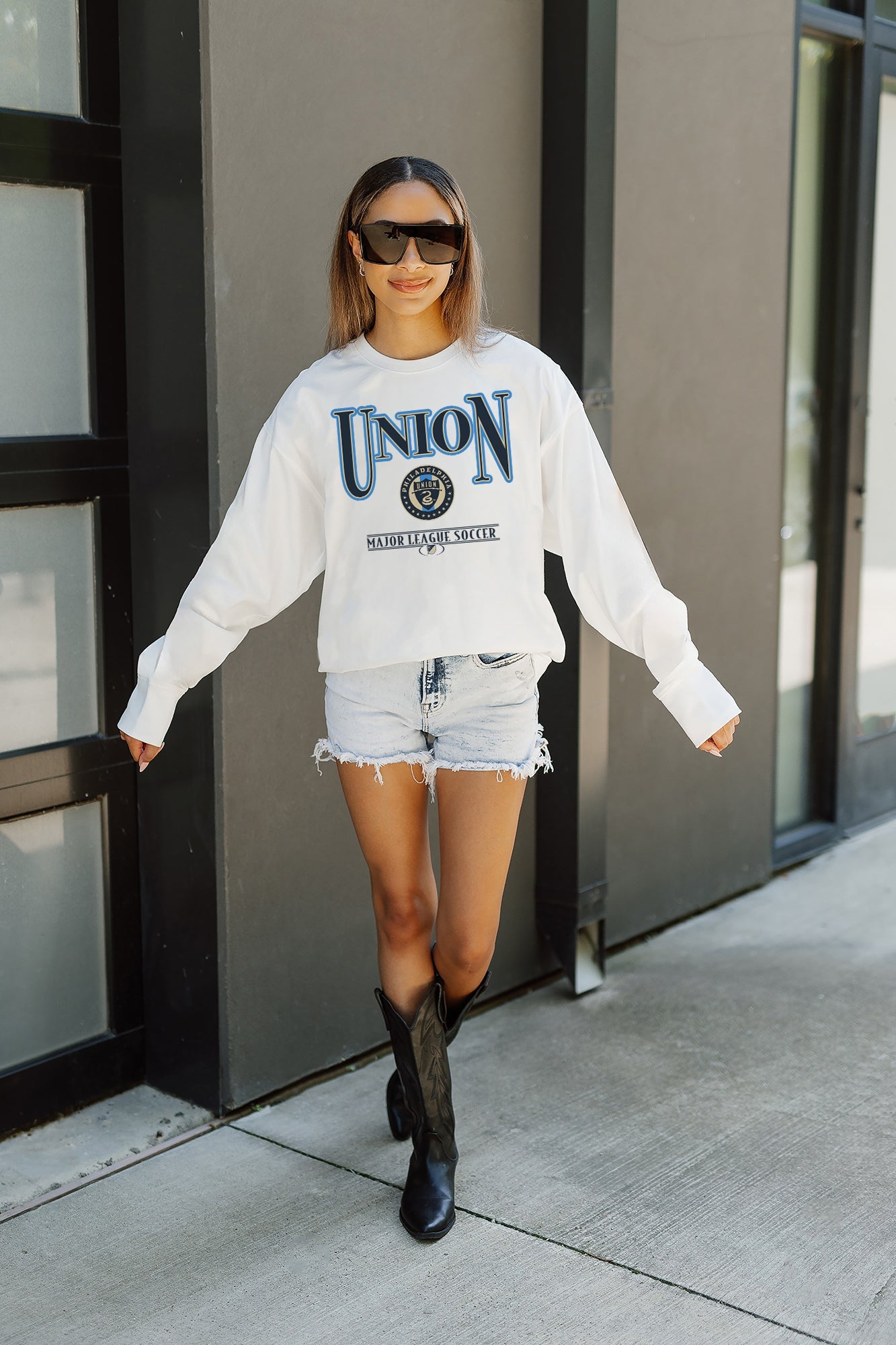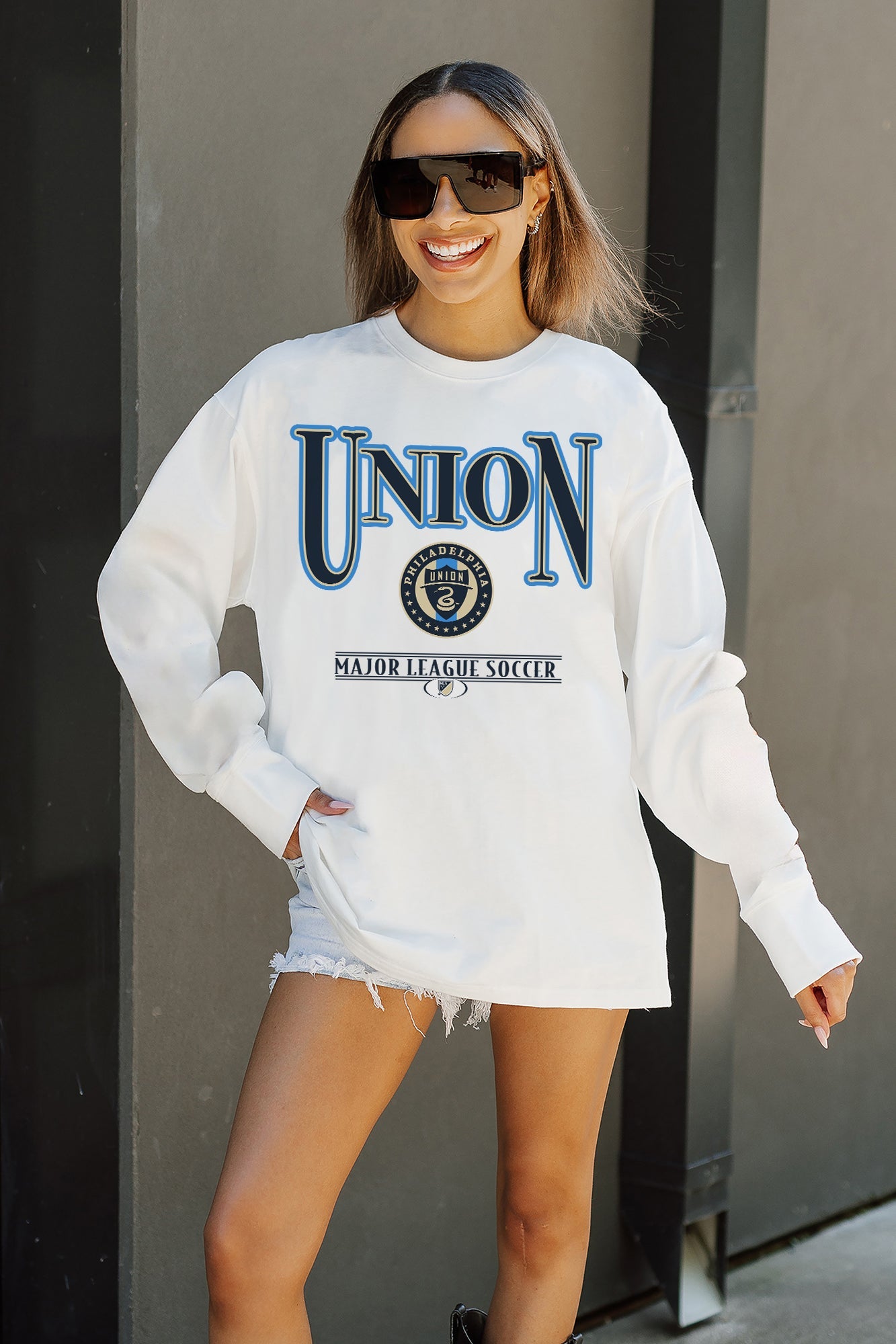 Bring the energy of the game to your wardrobe with our Philadelphia Union oversized long sleeve tee with ribbed neckline and cuffs. Showing off your Philadelphia Union spirit will be a breeze.
