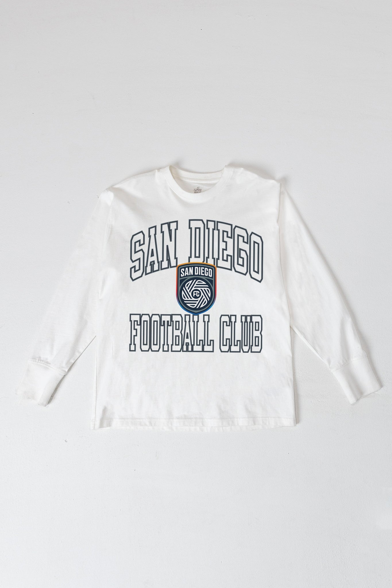 Bring the energy of the game to your wardrobe with our San Diego Fc oversized long sleeve tee with ribbed neckline and cuffs. Showing off your San Diego Fc spirit will be a breeze.
