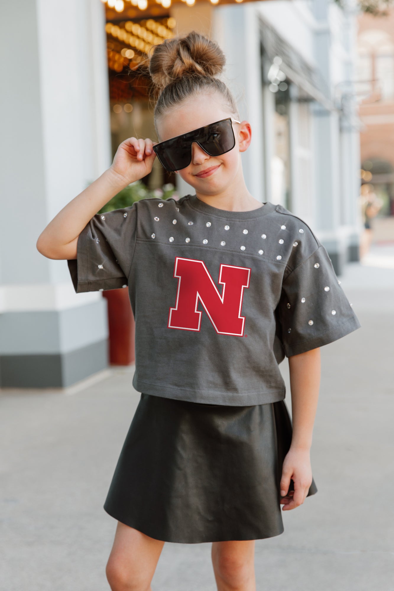 NEBRASKA CORNHUSKERS Making Moves Kid's Rhinestone Crop Tee