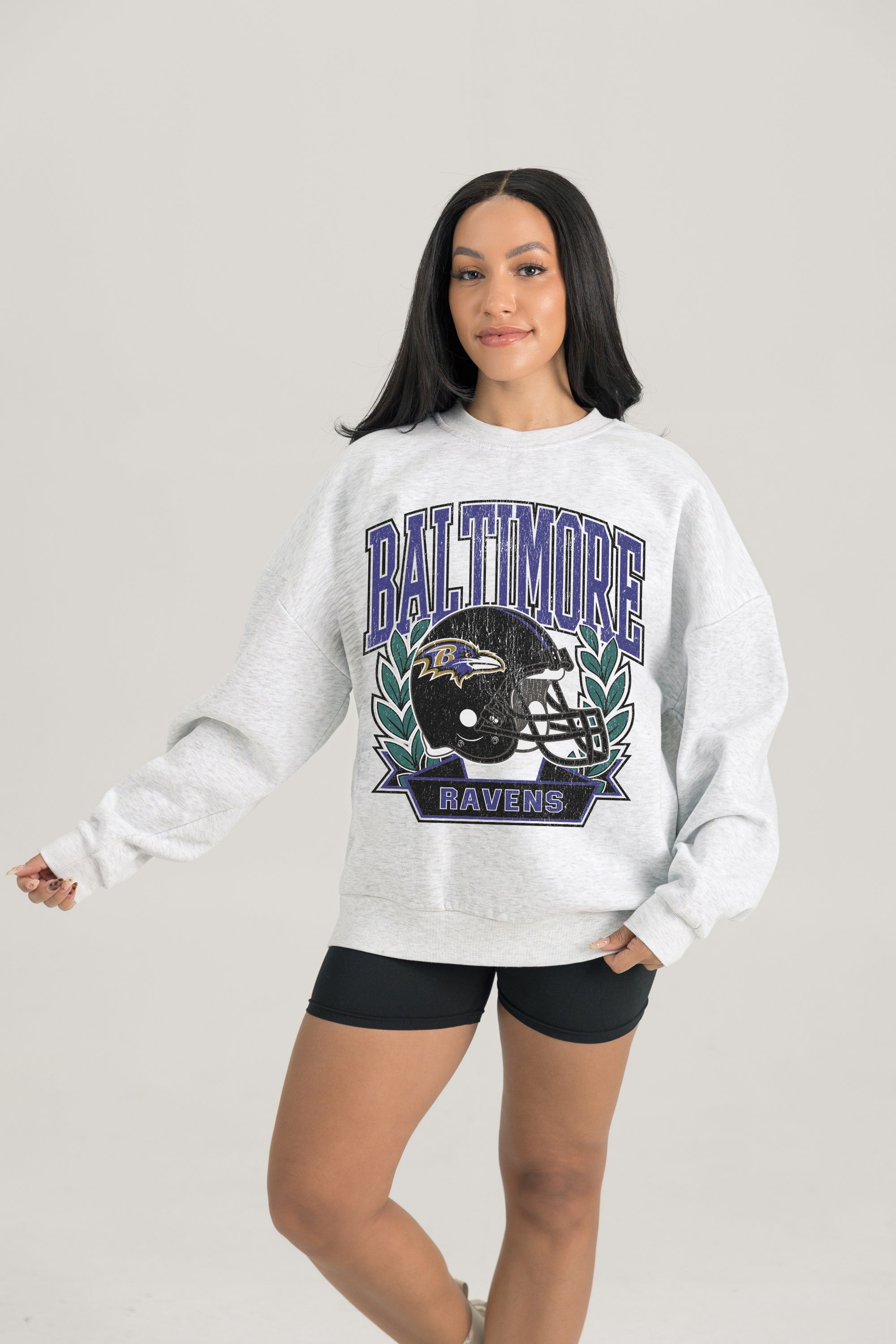 Stand out from the crowd in our Baltimore Ravens premium fleece long sleeve sweatshirt. Boasting an oversized fit, crewneck and ribbed knit neckline, wrists, and waistband, it effortlessly blends comfort with fashion. Show your support for your favorite school or team in this irresistibly soft sweatshirt.
