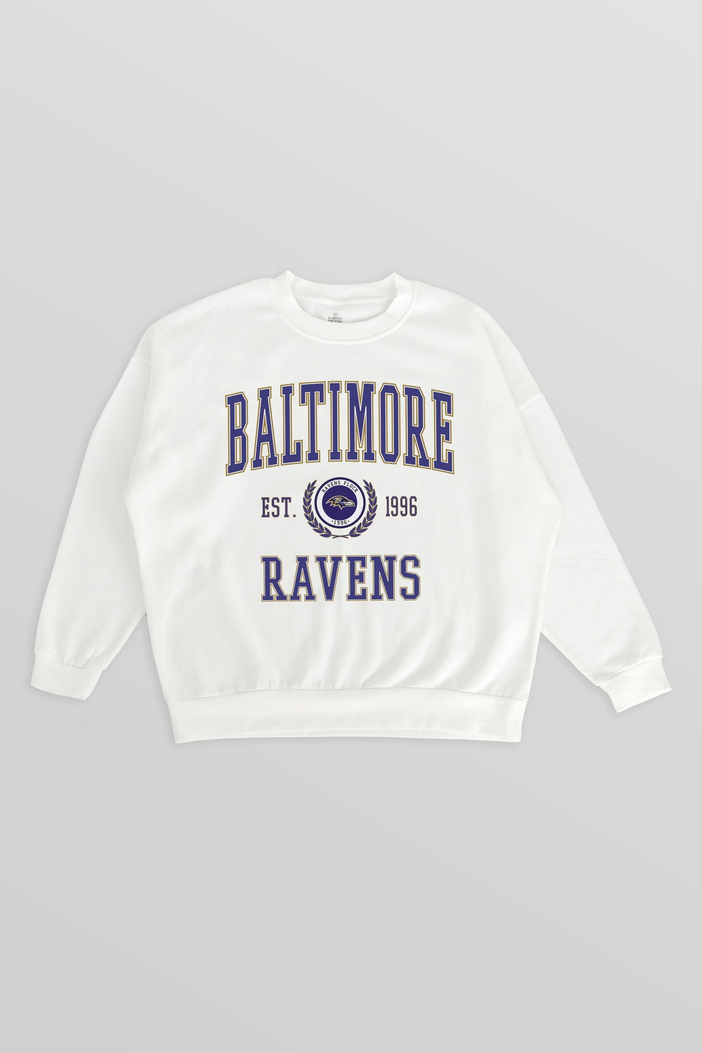 Stand out from the crowd in our Baltimore Ravens premium fleece long sleeve sweatshirt. Boasting an oversized fit, crewneck and ribbed knit neckline, wrists, and waistband, it effortlessly blends comfort with fashion. Show your support for your favorite school or team in this irresistibly soft sweatshirt.