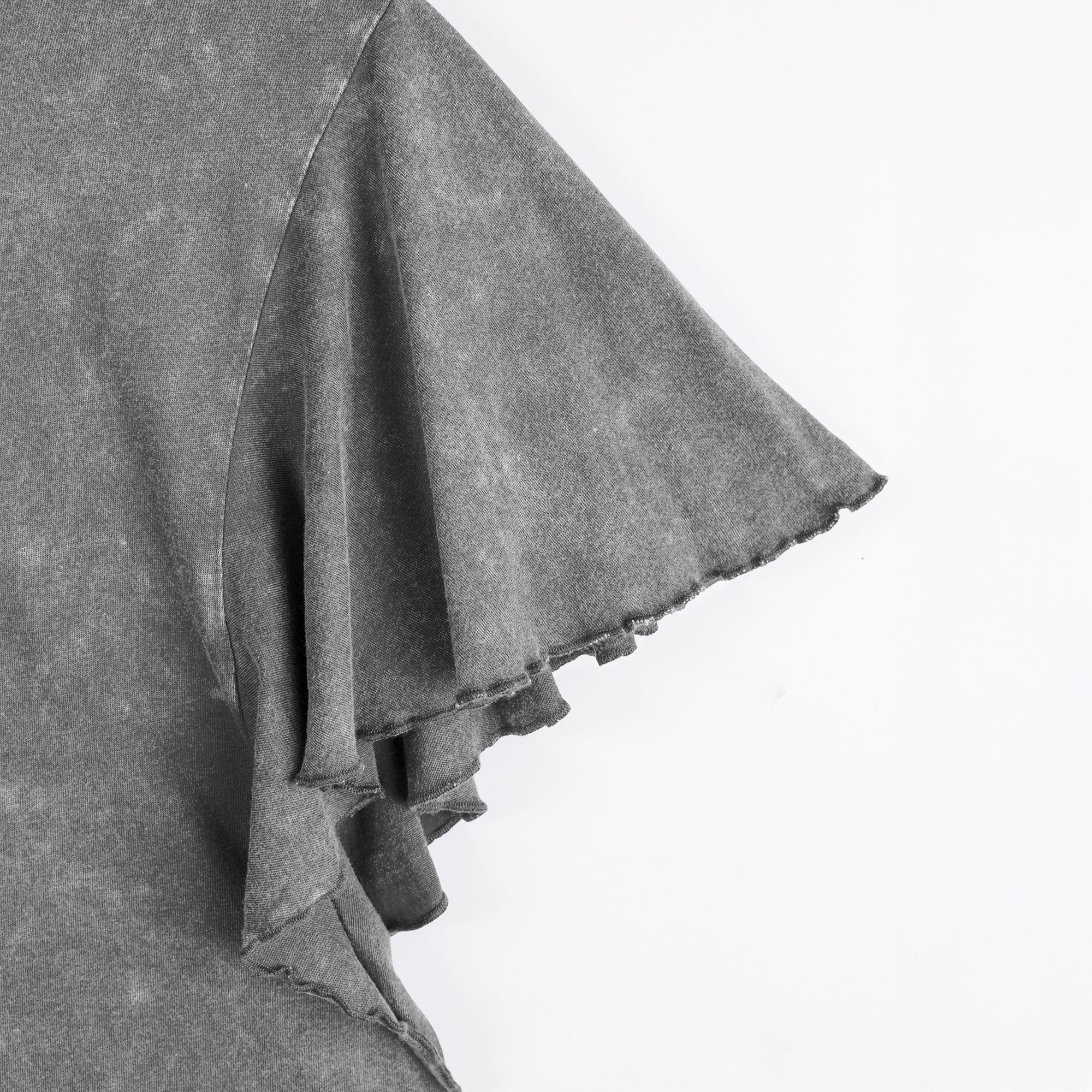 Hi Becky! We're so happy you're loving those adorable flutter sleeves, the super soft material, and that beautiful stone washed color! ✨