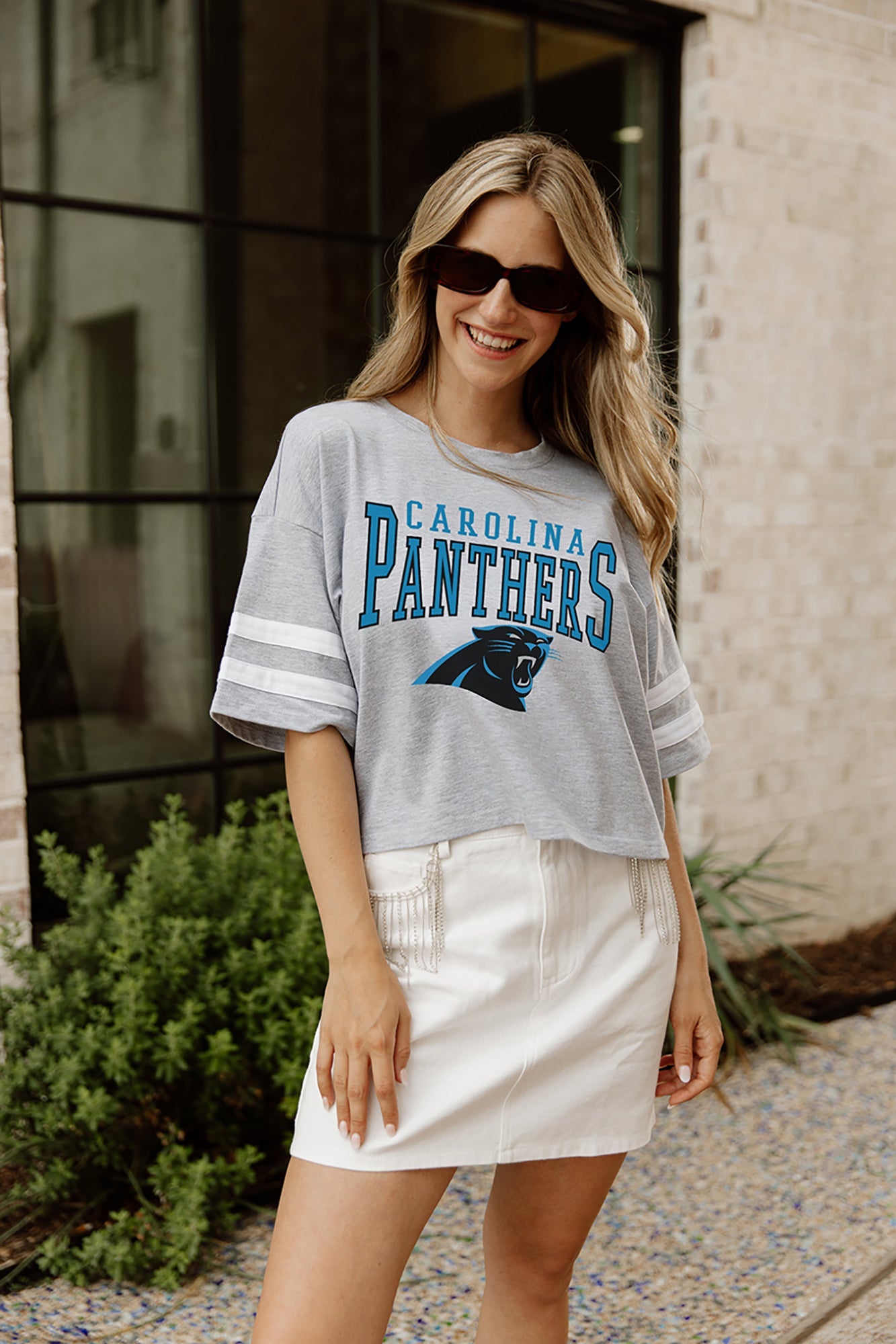 CAROLINA PANTHERS Gridiron Glam Crop Tee With Striped Detail