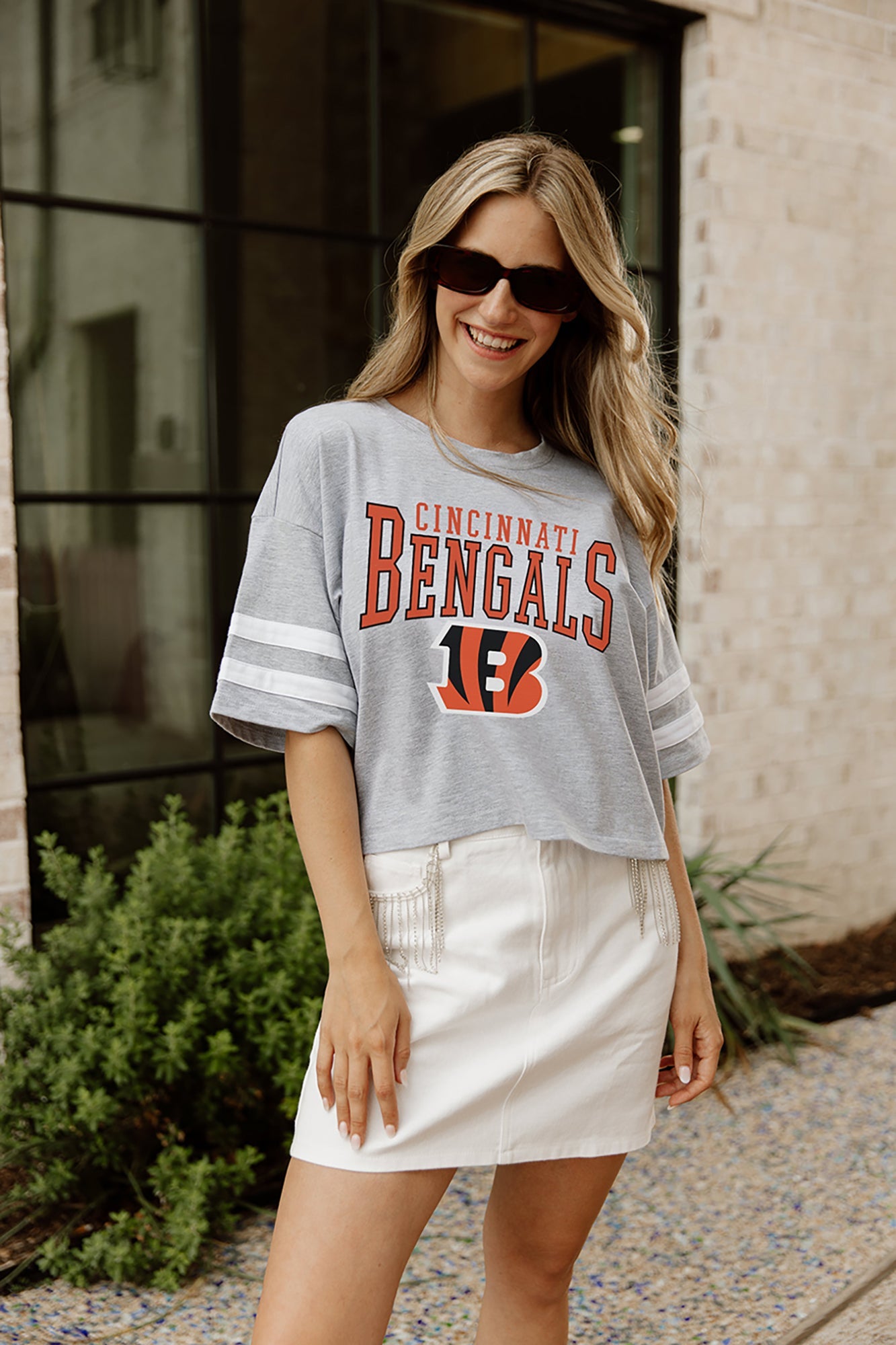 CINCINNATI BENGALS Gridiron Glam Crop Tee With Striped Detail